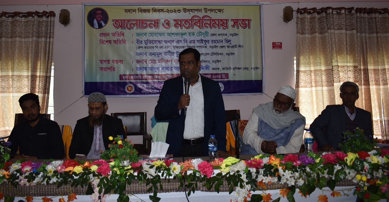 স্বাগত বক্তব্য রাখেন মো: মনিরুল বাশার, জেলা তথ্য অফিসার, নড়াইল। অনুষ্ঠানের সভাপতিত্ব করেন আবুল বাসার আল মামুন সিদ্দিকী, অধ্যক্ষ কারিগরি প্রশিক্ষণ কেন্দ্র, নড়াইল।
