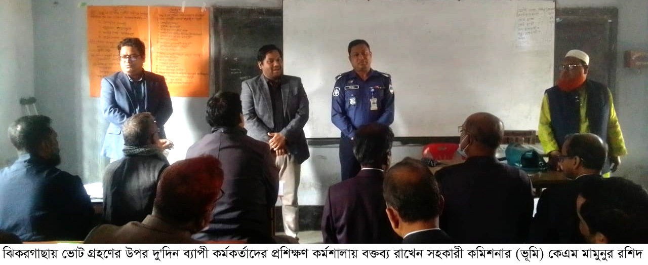 দ্বাদশ জাতীয় সংসদ নির্বাচনে ভোট গ্রহণের উপর দু’দিন ব্যাপী কর্মকর্তাদের প্রশিক্ষণ কর্মশালায় সহকারী কমিশনার (ভূমি) কেএম মামুনুর রশিদ বলেন, নির্বাচন সুষ্ঠু, নিরপেক্ষ ও গ্রহণযোগ্য করে তুলতে প্রশাসন বদ্ধপরিকর। আপনারা যাহারা এই কার্যক্রমে আমাদের পাশে থেকে সহযোগিতা করবেন তাদের কোন প্রকার সমস্যার সম্মুখীন হলে আমাদেরকে অবগত করবেন তাহলে প্রশাসনের পক্ষ হতে তাৎক্ষণিক ব্যবস্থা গ্রহণ করা হবে। ভয় পাওয়ার কোন কারণ নেই। নির্বাচন সুষ্ঠু, নিরপেক্ষ ও গ্রহণযোগ্য করার জন্য আপনারা প্রশিক্ষণ গ্রহণের উপর মনোনিবেশ করুন।