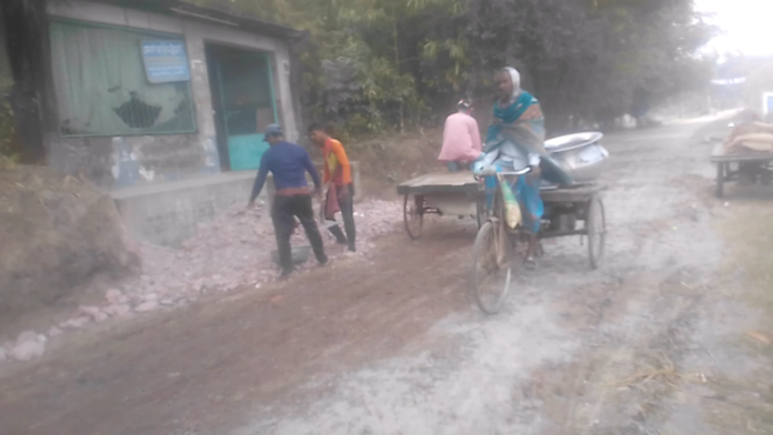 দেবহাটা (সাতক্ষীরা) প্রতিনিধি: সাতক্ষীরার দেবহাটা উপজেলার পারুলিয়া ও কুলিয়া ইউনিয়নের থেকে কোমরপুর হয়ে শাখরা বাজারে যাওয়ার পার হওয়ার একমাত্র ব্রীজ। এর পুর্বে কোমরপুর বিজিবির টহাল ক্যাম্পের সামনে পিচের রাস্তায় কাজ। সকাল সাড়ে ৮ টার দিকে সরজমিন পরিদর্শন কালে রোলার টি বন্ধ অবস্থায় দেখা যায়। ১০ টায় ১৩ মিনিটের দিকে রোলার টি দিয়ে রাস্তা সমান করা বাদেই সরাসরি পাবলিক সার্ভিস। যতটুকু সময় পাবলিকের নিজস্ব কাজ করা হয়েছে এই কাজটি না করে রাস্তা সমান করার লক্ষে চলমান থাকলে জনসাধারণের পায়ে হেটে পথচলা ও যে কোন যানবাহন যোগাযোগে যাতায়তে ব্যাপক উপকারের ছিলো। উপকারের প্রতিদান হচ্ছে, সরকারি রাস্তার কাজের অনিবার্য ফাঁকি। যেই রাস্তায় চলাচলের ক্ষেত্র জনসাধারণের ভোগান্তি পোহাতে হতো, সেই রাস্তায় সংস্কারের কাজ বটে, স্থানীয় জনতার সহ- কাজের ব্যাপারে বিভিন্ন অভিযোগ। অনেকে জানিয়েছেন, রোলার টি রাস্তা সমান করবেন, তা না করে রোলার টি নিয়েই গোডাউনের সামনে বিল্ডিং ভাঙার থেকে বাদ দেওয়া শুড়কি সমান করতে দেখা গেছে এমনই জানান। যে ব্যাক্তিদের কে রাস্তার কাজের রোলার সাথে থেকে একটি কাজের দৃশ্য,রাস্তার কাজের কেউ বলে জানা যায়।