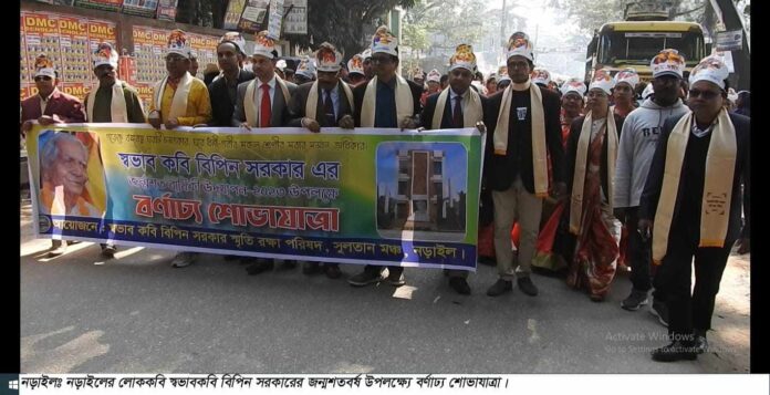 নড়াইল জেলা প্রতিনিধি : নড়াইলর কৃতি সন্তান দক্ষিন-পশ্চিম অঞ্চলের অন্যতম লোককবি স্বভাবকবি বিপিন সরকারের জন্মশতবার্ষিকী উপলক্ষে দু’দিনব্যাপি জন্মাৎসবের উদ্বোধন হয়েছে। স্বভাবকবি বিপিন সরকার স্মতি রক্ষা পরিষদের আয়োজনে। শুক্রবার (২২ ডিসম্বর) মোমবাতি প্রজ্জ্বলনের মাধ্যমে নড়াইল সুলতান মঞ্চে এ উৎসবের উদ্বোধন করেন অতিরিক্ত জেলা ম্যাজিস্ট্রেট লিংকন বিশ্বাস । এ সময় অনুষ্ঠানে সংক্ষিপ্ত বক্তব্য দেন, অতিরিক্ত পুলিশ সুপার তারেক আল মেহেদী, নড়াইল এলজিইডি এর নির্বাহী প্রকৌশলী বিশ্বজিৎ কুন্ডু, স্বভাবকবি বিপিন সরকার স্মতি রক্ষা পরিষদের সভাপতি মলয় কুমার কুন্ডু, সাধারণ সম্পাদক ডা. মায়া রাণী বিশ্বাস, চারণ কবি বিজয় সরকার ফাউন্ডেশনের যুগ্ম আহবায়ক আকরাম শাহীদ চুনু, নড়াইল প্রেসক্লাবের সভাপতি অ্যাডভোকট আলমগীর সিদ্দিকী,সম্মিলিত সাংস্কৃতিক জোট নড়াইলের সাধারণ সম্পাদক শরফুল আলম লিটু এবং যুগ্ম সাধারণ সম্পাদক মাহবুবুর রহমান লিটু। পরে শহরে এক বর্ণাঢ্য শোভাযাত্রা বের হয়। দু’দিনব্যাপি জন্মৎসবে বিভিন আয়াজনের মধ্য রয়েছে কবির কর্মের উপর সেমিনার, বিপিন সরকার রচিত কবিতা আবত্তি, বিপিনগীতি, হালুই গান, সারি গান, অষ্টক গান ও অষ্টক যাত্রাপালা।