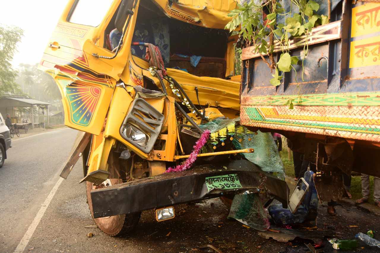 স্থানীয় সূত্রে জানা যায়, শুক্রবার ভোরে চুকনগর থেকে ছেড়ে আসা খুলনা মেট্রো ট ১১ – ১৩৩১ নাম্বারের একটি সুপারি ও আলু বোঝাই ট্রাক রেললাইন সংলগ্ন ভৈরব ব্রিকস এর সামনে নষ্ট হয়ে থাকা কুষ্টিয়া ট ১১ – ১৪৯১ নাম্বার অপর একটি আলু বোঝাই ট্রাকের পিছনে সজোরে ধাক্কা মারে। এতে ট্রাকের সামনের অংশ ক্ষতিগ্রস্ত হয় এবং ট্রাক ড্রাইভার ও হেলপার মারাত্মকভাবে আহত হন। সংবাদ পেয়ে যশোর কোতয়ালী মডেল থানা পুলিশ ও ফায়ার সার্ভিসের একটি টিম ঘটনাস্থলে পৌঁছে উদ্ধার কার্যক্রম শুরু করেন এবং মারাত্মক জখম অবস্থায় ট্রাকের হেলপার’কে উদ্ধার করে যশোর ২৫০ শয্যা জেনারেল হাসপাতালে পাঠিয়ে দেন। স্থানীয়রা জানান, ভোর আনুমানিক ৪ঘটিকার দিকে আমরা বিকট একটা শব্দ শুনতে পাই। শব্দ শুনে রাস্তায় এসে দেখি রাস্তার পাশে নষ্ট হয়ে থাকা আলু বোঝাই ট্রাকের পিছনে একটি ট্রাক সজোরে ধাক্কা মেরেছে। আমরা তড়িঘড়ি করে উদ্ধার কার্যক্রম শুরু করি এবং ট্রাক ড্রাইভার’কে বের করতে সক্ষম হই। কিন্তু হেলপার ভিতরে আটকে থাকায় ফায়ার সার্ভিস ও পুলিশকে খবর দেয়া হয়। পুলিশ ও ফায়ার সার্ভিস দ্রুত ঘটনা স্থলে এসে ট্রাকের বডি কেটে ট্রাকের হেল্পারকে উদ্ধার করে। যশোর ২৫০ শয্যা জেনারেল হাসপাতালে প্রেরণ করেন। হেল্পারের অবস্থা আশংকাজনক বলে তারা জানান। অতিরিক্ত গতি এবং ঘুম চোখে নিয়ে গাড়ি চালানোর কারণে এই ট্রাক দুর্ঘটনার অন্যতম কারন বলে স্থানীয়রা মনে করেন।