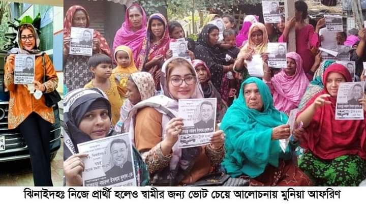 কামরুজ্জামান লিটন ঝিনাইদহ : খবরের মিরোনাম দেখে অনেকেই ভাবতে পারেন ফুলকপি হয়তো ট্রাকে বহন করা হচ্ছে। আসলে বিষয়টি তেমন নয়। আসন্ন দ্বাদশ জাতীয় সংসদ নির্বাচনে ঝিনাইদহ-১ (শৈলকুপা উপজেলা) আসনে দুই স্বতন্ত্র প্রার্থীর প্রতিক ফুলকপি ও ট্রাক। প্রতিদ্বিন্দি এই দুই প্রার্থী আবার স্বামী-স্ত্রীও। ভোটের লড়াইয়ে স্বামী-স্ত্রী মাঠে নামলেও, ভোট চাওয়ার কৌশল ভিন্ন। এই দুই প্রতিদ্বন্দি প্রার্থী হলেন ঝিনাইদহ জেলা আওয়ামী লীগের সহ-সভাপতি স্বতন্ত প্রার্থী নজরুল ইসলাম দুলাল ও তার স্ত্রী মুনিয়া আফরিন। নির্বাচনে স্বতন্ত্র প্রার্থী নজরুল ইসলাম পেয়েছেন ট্রাক প্রতীক। অন্যদিকে স্ত্রী মুনিয়া আফরিনের প্রতীক ‘ফুলকপি’। নির্বাচন প্রচারাভিযানে গিয়ে শুক্রবার সরজমিন দেখা যায় নিজে প্রার্থী হলেও স্বামী নজরুল ইসলাম দুলালের পক্ষে ভোট চাইছেন স্ত্রী মুনিয়া আফরিন। দিনরাত করছেন উঠান বৈঠক। স্বামীর পক্ষে ভোট চাওয়া স্ত্রী মুনিয়া আফরিনের এমন কিছু ছবি ফেসবুকে ছড়িয়ে পড়েছে। শৈলকুপার কাঁচেরকোল এলাকায় দেখা যায় স্বামীর ট্রাক প্রতীকের পোস্টার বিলি করে ভোট চাচ্ছেন মুনিয়া আফরিন। তাতে দেখা যায় মুনিয়া স্বামীর ট্রাক প্রতিক প্রদর্শন করে পোজ দিচ্ছেন। লাঙ্গলবাঁধ এলঅকার রহিমা বেগম নামে এক নারী জানান, মুনিয়া নিজে প্রার্থী তবুও স্বামী নজরুল ইসলামের জন্য ভোটের মাঠ চষে বেড়াচ্ছেন স্ত্রী। এটা আমার কাছে ভালো লেগেছে। কমলা বানু নামে ধলহরাচন্দ্র এলাকার এক গৃহবধু জানান, স্বামীর প্রতি মুনিয়ার এই ভালোবাসা ও প্রার্থীতা কোরবানীর দৃশ্য ভোটারদের সাড়া জাগিয়েছে। এ বিষয়ে জানতে চাইলে স্বতন্ত্র প্রার্থী মুনিয়া আফরিন জানান, ‘আমি নিজের জন্য প্রচারণা করছি, সঙ্গে স্বামীর পক্ষেও। প্রথম দিনে শৈলকুপার ভাটই এলাকায় নারীদের কাছে স্বামীর জন্য ভোট চেয়েছি। শৈলকুপার হাবিবপুর গ্রামে করেছি উঠান বৈঠক’। তিনি বলেন, ‘স্ত্রী হিসেবে আমার দায়িত্ব আছে। আমি নিজের পাশাপাশি স্বামীর জন্যও মানুষের কাছে যাচ্ছি। ভোটাররা যাকে পছন্দ করবেন তাকেই ভোট দেবেন। কেননা শৈলকুপার ভোটাররা পরিবর্তন চাই।’ তাই পরিবর্তনের জন্য আমি এমন সিদ্ধান্ত নিয়ে মাঠে নেমেছে। এদিকে নিজে প্রার্থী হয়ে স্বামীর পক্ষে স্ত্রীর এই প্রচরণা শৈলকুপা জুড়ে বেশ আলোচনার খোরাক জুগিয়েছে। গ্রামে গ্রামে মহিলা ভোটাররা মুনিয়াকে বেশ ভালো ভাবেই বরণ করে নিচ্ছেন।