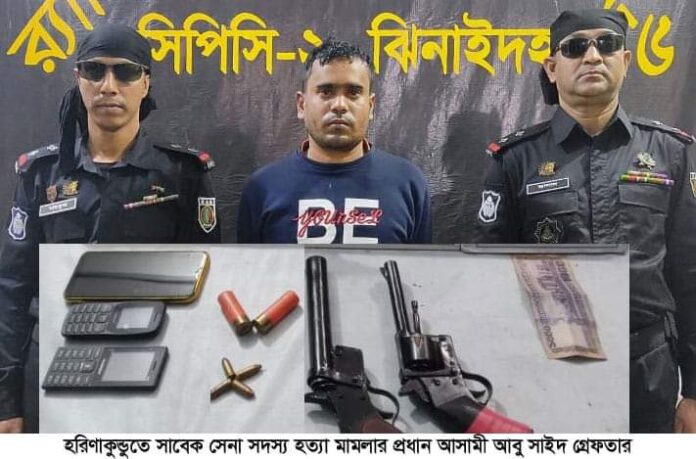 র‌্যাবের অভিযানে দুইটি অস্ত্র ও ৬ রাউন্ড গুলি উদ্ধার হরিণাকুন্ডুতে সাবেক সেনা সদস্য হত্যা  মামলার প্রধান আসামী গ্রেফতার
