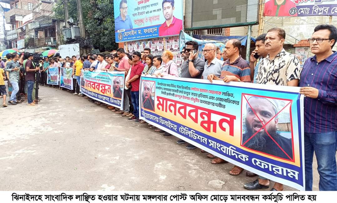 ঝিনাইদহে সাংবাদিক লাঞ্ছিত হওয়ার ঘটনায় মানববন্ধন ও বিক্ষোভ মিছিল