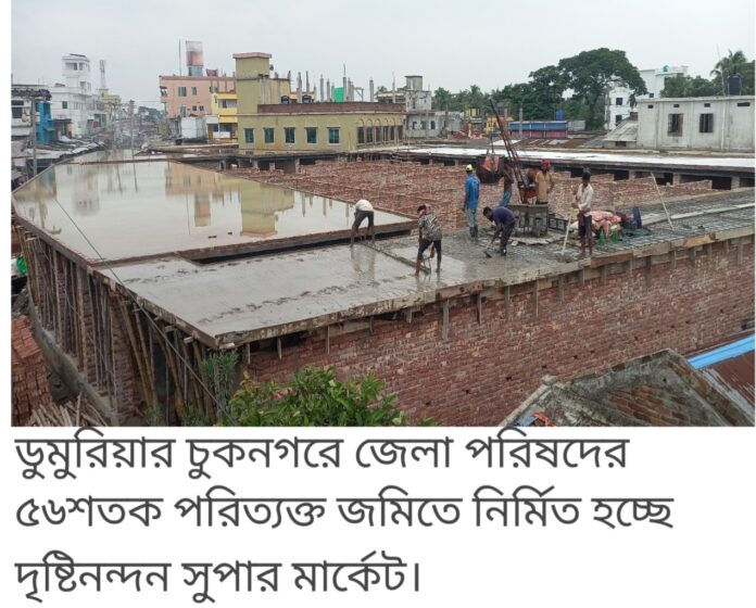 গাজী আব্দুল কুদ্দুস, ডুমুরিয়া (খুলনা) : বঙ্গবন্ধু শেখ মুজিবুর রহমানের স্মৃতি বিজড়িত ও মহান মুক্তিযুদ্ধের সময় শহীদদের রক্তেস্নাত খুলনার ডুমুরিয়া উপজেলার চুকনগরে জেলা পরিষদের দীর্ঘকাল পরিত্যক্ত ৫৬শতক জমির উপর নির্মিত হচ্ছে একটি দৃষ্টিনন্দন সুপার মার্কেট। মার্কেটটি নির্মিত হলে এর সুফল ভোগ করবে এ বাজারের ব্যবসায়ী ও সাধারণ মানুষ। এটি খুলনা, সাতক্ষীরা ও যশোর জেলার সংযোগস্থল ঐতিহ্যবাহী বানিজ্যিক নগরী ও খুলনার প্রবেশদ্বার নামে খ্যাত চুকনগর বাজারের যতিন কাশেম রোডের ভদ্রা নদীর গা ঘেষে নিরিবিলি পরিবেশে অবস্থিত। মার্কেটটি নির্মিত হলে বানিজ্যিকভাবে অনেক সুফল পাবে তিন জেলার মানুষ। তাদের বিভিন্ন ধরনের কেনাকাটা করার জন্য জেলা শহর খুলনা, সাতক্ষীরা ও যশোরে যাওয়া লাগবে না। এক মার্কেটের সবকিছু পাওয়া যাবে। এখানে এক মার্কেটে মোট ১২৬টি ঘর নির্মিত হচ্ছে।