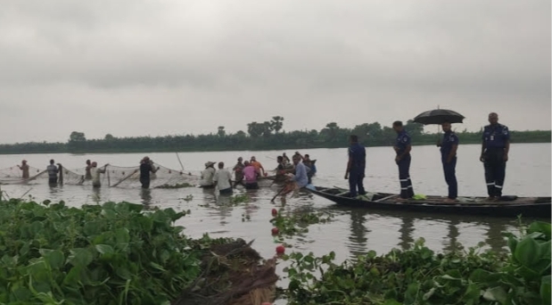 যশোর অফিস : যশোরের চৌগাছা উপজেলার বল্লভপুর বাওড়ের মাছ আহরণ শুরু হয়েছে। বুধবার সকালে সহকারী কমিশনার (ভূমি) ও নির্বাহী ম্যাজিস্ট্রেট গুঞ্জন বিশ^াস, চৌগাছা থানার ওসি (তদন্ত) জেল্লাল হোসেনের উপস্থিতিতে মাছ ধরা শুরু করে বাওড়ের ইজারাদার বল্লভপুর মৎস্যজীবী সমবায় সমিতি লিমিটেডের সদস্যরা। ইতোপূর্বে এলাকার চিহ্নিত সন্ত্রাসীরা বাওড় দখলের চেষ্টা, মাছ ধরতে বাধা, জাল কেটে দেয়া ও প্রাণনাশের হুমকি দেয়ায় জেলা প্রশাসক কাছে অভিযোগ দেয়া হয়। জেলা প্রশাসকের নির্দেশে সমিতির সদস্যদের নির্বিঘ্নে মাছ আহরণে সহায়তা করে স্থানীয় প্রশাসন। বল্লভপুর মৎস্যজীবী সমবায় সমিতির সাধারণ সম্পাদক তারক কুমার বিশ্বাস জানান, বল্লভপুর বাওড় জলমহালটি ভূমি মন্ত্রণালয় থেকে ৬ বছর মেয়াদে ইজারা নিয়ে চাষাবাদ করছে বল্লভপুর মৎস্যজীবী সমবায় সমিতি লিমিটেড। গত ২১ জুন বাওড়ের মাছ ধরার প্রস্তুতি নেয় সদস্যরা। এসময় স্থানীয় সন্ত্রাসীরা প্রকাশ্যে সমিতির সদস্যদের প্রাণনাশের হুমকি দেয়। এক পর্যায়ে প্রায় ৭ লাখ টাকার জাল কেটে নষ্ট করে দেয়। একই দিন মোবাইল ফোনে আমাকে প্রাণনাশের হুমকি দেয়া হয়। এই ঘটনায় থানায় লিখিত অভিযোগ ও সাধারণ ডায়েরি করা হয়। এরপর ২৩ জুন  রাতে সন্ত্রাসীরা বাওড় দখলের হানা দেয়। এ সময় পুলিশের উপস্থিতি টের পেয়ে জাল ও মাছ ফেলে পালিয়ে যায়। সমিতির সদস্যদের অব্যাহতভাবে হুমকি ও বাওড় দখলের চেষ্টা করছে এলাকার চিহ্নিত সন্ত্রাসীরা। এ বিষয়ে জেলা প্রশাসক, উপজেলা নির্বাহী কর্মকর্তার কাছে লিখিত অভিযোগ দেয়া হয়। বুধবার জেলা প্রশাসকের নির্দেশে উপজেলা প্রশাসন ও থানার উর্ধ্বতন কর্মকর্তা এবং আইনশৃংখলা বাহিনীর সদস্যরা উপস্থিতিতে বল্লভপুর বাওড়ে মাছ আহরণ শুরু হয়েছে। তিনি আরও বলেন, বুধবারের মাছ আহরণ কার্যক্রম ব্যহত করার জন্য মঙ্গলবার দিবাগত রাতে (২জুলাই) সমিতির সদস্যদের জাল কেটে নষ্ট করে দিয়েছে। বিকল্প ব্যবস্থায় বুধবার মাছ আহরণ শুরু করা হয়েছে।