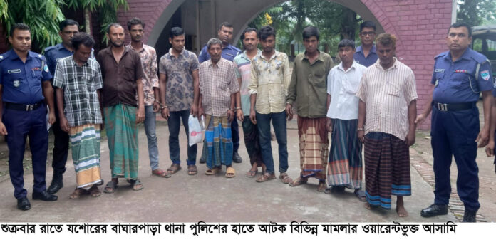 স্টাফ রিপোর্টার, বাঘারপাড়া (যশোর) : শুক্রবার রাতে বাঘারপাড়া থানা পুলিশের বিশেষ অভিযানে ওয়ারেন্টভুক্ত নয় জন আসামিকে আটক করেছেন থানা পুলিশ ।