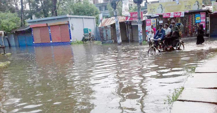 ডিয়ামপাড়ার অনেক বাড়ি পানি প্রবেশ করেছে। এসব এলাকার ড্রেন ছাপিয়ে উপচেপড়া পানি সড়ক পার হয়ে ঘরের মধ্যেও ঢুকে পড়েছে। ভেসে গেছে বিভিন্ন এলাকার পুকুর ও মাছের ঘের। পাশাপাশি শহরের অন্তত ৩০টি সড়কে পানি জমে আছে। খড়কি এলাকার শাহ আবদুল করিম সড়ক, স্টেডিয়ামপাড়া, শহরের পিটিআই, নাজির শংকরপুর, খড়কি রূপকথা মোড় থেকে রেললাইন, ফায়ার সার্ভিস মোড় থেকে পাইপ পট্টি, বেজপাড়া চিরুনিকল, মিশনপাড়া, আবরপুর ক্যান্টনমেন্ট, বিমানবন্দর, ষষ্ঠীতলা পাড়ার বিভিন্ন সড়কে জলাবদ্ধতার সৃষ্টি হয়েছে। এছাড়াও শহরের ছোট ছোট সড়কেও জলাবদ্ধতা দেখা দিয়েছে। এসব সড়কের দুই পাশের ড্রেনের ময়লা-আবর্জনার নোংরা পানি উপচে পড়ে সড়কে। সড়ক ছাপিয়ে সেই পানির ঢুকে পড়ে বাসাবাড়ি, ব্যবসাপ্রতিষ্ঠানেও। দুপুরের এ বৃষ্টিতে সবচেয়ে বেশি অসুবিধায় পড়ে স্কুল ফেরত শিক্ষার্থীরা। পৌরসভার ৫, ৬ ও ৭ নম্বর ওয়ার্ডে অনেক মানুষের বসতঘরে পানি ঢুকেছে। জলাবদ্ধতায় ভোগান্তিতে পড়েন ওই ওয়ার্ডের মানুষ। স্থানীয় ব্যবসায়ী আমিনুর রহমান বলেন, কয়েক ঘণ্টার বৃষ্টিতে সড়কে হাঁটু পানি জমেছে। সড়কের পাশে ড্রেন থাকলেও আবর্জনায় পূর্ণ হওয়ায় পানি উপচে সড়কে প্রবেশ করেছে। সড়কের সেই পানি আবার দোকানে প্রবেশ করেছে।