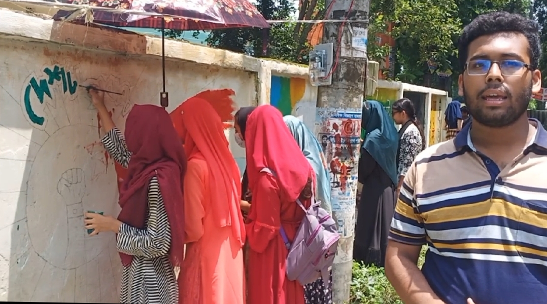 কোটচাঁদপুরে শিক্ষার্থীদের গ্রাফিতিতে পালটে যাচ্ছে দেয়ালের চিত্র