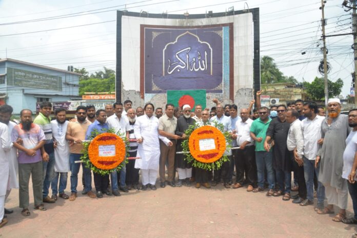 যশোর অফিস : যশোরে বঙ্গবন্ধু শেখ মুজিবুর রহমানের শাহাদাৎ বার্ষিকীতে বঙ্গবন্ধুর ম্যুরালে পূষ্পার্ঘ্য অর্পণ করেছে যশোর জেলা আওয়ামী লীগ ও তার অঙ্গ সংগঠনগুলো। এছাড়া এ উপলক্ষে বিভিন্ন স্থানে খাবার বিতরণ করা হয়েছে। এদিন বেলা ১১ টার দিকে যশোর জেলা আওয়ামী লীগ, যশোর শহর আওয়ামী লীগ, মহিলা আওয়ামী লীগ পুষ্পার্ঘ্য অর্পণ করে শ্রদ্ধা জানান বঙ্গুবন্ধুকে। এসময় আরো কয়েকটি অঙ্গ সংগঠনের নেতৃবৃন্দ পূষ্পার্ঘ্য অর্পণ করে শ্রদ্ধা নিবেদন করেন। জেলা আওয়ামী লীগের সহসভাপতি পৌর মেয়র হায়দার গণি খান পলাশ, এডভোকেট আলী রায়হান,মুক্তিযুদ্ধ বিষয়ক সম্পাদক অধ্যাপক হারুন অর রশিদ, উপদপ্তর সম্পাদক অহেদুল ইসলাম তরফদার, মারুফ হোসেন খোকন, প্রভাষক মোয়াজ্জেম হোসেন, মহিলা আওয়ামী লীগ সাধারণ সম্পাদক জ্যোৎস্না আরা মিলি, মহিলা আওয়ামী লীগের কেন্দ্রিয় উপ কমিটির সদস্য হাজেরা পারভীন, সাবেক ইউপি চেয়ারম্যান নাজনীন নাহার, জেলা যুবলীগের যুগ্ম সাধারণ সম্পাদক আজাহার হোসেন স্বপন, সাংগঠনিক সম্পাদক মঈন উদ্দিন মিঠু, শহর যুবলীগের আহবায়ক মাহমুদুল হাসান মিলু, শহর স্বেচ্ছাসেবক লীগের আহবায়ক মাহমুদ হাসান মিলু, আডভোকেট সৈয়দ কবির হোসেন জনি, শহর আওয়ামী লীগ নেতা আজিজুল হক, লোকমান হোসেন, খলিলুর রহমান। এছাড়া মুক্তিযোদ্ধা সংসদ ভবনে জেলা ইউনিটের উদ্যোগে আলোচনা সভা, বঙ্গবন্ধুর প্রতি শ্রদ্ধা নিবেদন ও দোয়া অনুষ্ঠিত হয়। আলোচনায় প্রধান অতিথি ছিলেন বীর মুক্তিযোদ্ধা রবিউল আলম। অনুষ্ঠানে বীরমুক্তিযোদ্ধা মজহারুল ইসলাম মন্টুর সভাপতিত্বে বক্তৃতা করেন বীর মুক্তিযোদ্ধা কাজী আব্দুস সবুর হেলাল, আফজাল হোসেন দোদুল, আব্দুস সাত্তার, আব্দুল ওহাব, আবুল কাশেম, মণিরামপুর উপজেলার সাবেক কমান্ডার ইকবাল হোসেন, ঝিকরগাছা উপজেলার সাবেক কমান্ডার গোলাম রসুল, জেলা মুক্তিযোদ্ধা সন্তান কমান্ডের সাধারণ সম্পাদক আনিসুর রহমান প্রমূখ। এছাড়া কর্মসূচিতে অংশ নেন জেলা শ্রমিক লীগের সাধারণ সম্পাদক নাছির উদ্দিন, যুগ্মসম্পাদক চান মিয়া, সাংগঠনিক সম্পাদক শেখ তৌহিদুর রহমান শাহীন, সদস্য মোহাম্মদ মুন্না, জেলা রিক্সা ভ্যান শ্রমিক লীগের সভাপতি আবু তাহের, যুগ্মসম্পাদক খান মোহাম্মদ ওসমান গনী, ইজিবাইক শ্রমিকলীগের সভাপতি আবু হাসান ট্যাংকু প্রমূখ। এদিকে আওয়ামী লীগ পরিবারের আয়োজনে যশোরের চুয়াডাঙ্গা বাসস্ট্যান্ডে খাবার বিরতণ করা হয়। এর নেতৃত্ব দেন জেলা আওয়ামী লীগ নেতা শেখ আতিকুর রহমান বাবু, এসময় উপস্থিত ছিলেন যশোর পৌরসভার ৪ নম্বর ওয়ার্ড আওয়ামী লীগের সভাপতি খলিলুর রহমান, সাধারণ সম্পাদক লোকমান হোসেন, শহর আওয়ামী লীগ নেতা মুন্স সেলিম আহমেদ, আলাউদ্দিন আলা, হালিমুল হক ফরহাদ, জেলা যুবলীগের নেতা মঈন উদ্দিন মিঠু, শামীম