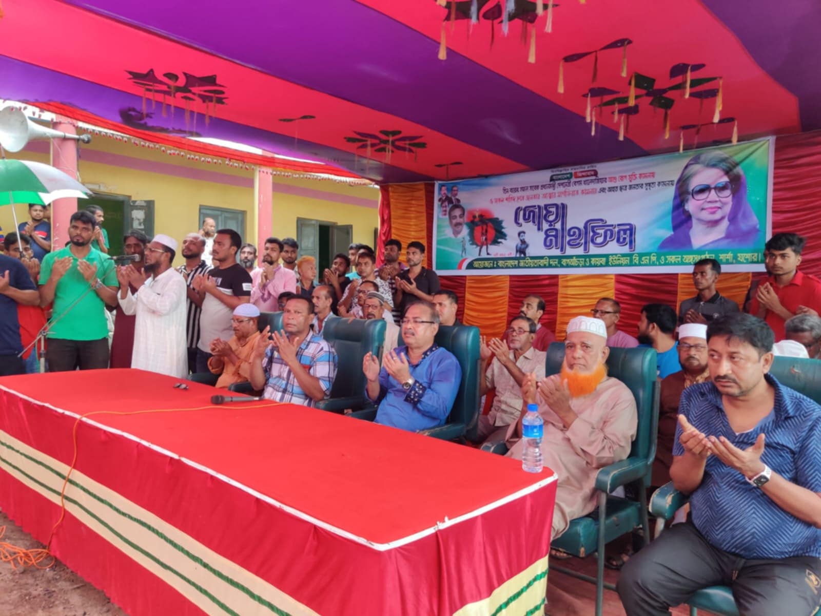 শহিদুল ইসলাম::: যশোরের শার্শায় সাবেক তিন বারের প্রধানমন্ত্রী বেগম খালেদা জিয়ার রোগমুক্তি ও সৈরাচার সরকার পতন আন্দলোনে নিহত শহীদ ছাত্রজনতার আত্মার মাগফিরাত কামনা এবং আহতদের দ্রুত সুস্থতা কামনা করে দোয়া ও আলোচনা সভা অনুষ্ঠিত হয়েছে। শুক্রবার(১৬ আগষ্ট) বিকালে উপজেলার বাগআঁচড়ায় ইউনিয়ন বিএনপির আয়োজনে এ দোয়া ও আলোচনা সভা অনুষ্ঠিত হয়। বাগআঁচড়া ইউনিয়ন বিএনপির আহ্বায়ক আসাদুজ্জামান মিঠুর সভাপতিত্বে এ অনুষ্ঠানে প্রধান অতিথি হিসেবে উপস্থিত ছিলেন বাংলাদেশ জাতীয়তাবাদী দল বিএনপির সাবেক দপ্তর সম্পাদক ও সাবেক সংসদ সদস্য মফিকুল হাসান তৃপ্তি। আরো উপস্থিত ছিলেন,বাগআঁচড়া ইউনিয় বিএনপি অন্যতম নেতা আলহাজ্ব কুদ্দুস আলী বিশ্বাস,উপজেলা বিএনপি নেতা মশিউর রহমান, আব্দুল রশিদ, আনোয়ার হোসেন,মিকাইল হোসেন মনা,সাবেক স্বেচ্ছাসেবক দল নেতা আলমগীর কবির আমির হোসেন মোল্লা,প্রফেসর নুরুজ্জামান,শার্শা উপজেলা স্বেচ্ছাসেবক দলের আহ্বায়ক রাকিবুল হাসান রিপন, উপজেলা যুবদলের যুগ্ন আহবায়ক মেহেদী হাসানসহ যুব নেতা, মাসুদ, আশিক, সালমান,তরিকুল, সামিনুর, ওয়াছি, রাজু, সাহিব উদ্দিন, আরিফ, বাসার প্রমুখ।