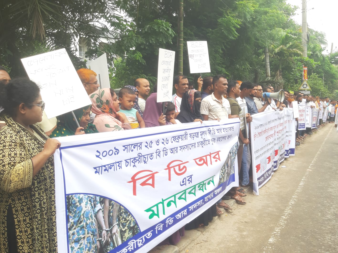 যশোর স্পেশাল বিডিআর সদস্যদের চাকরিতে পুনর্বহাল ও কারাবন্দীদের মুক্তি দাবিতে যশোরে মানববন্ধন স্মারকলিপি বিক্ষোভ...