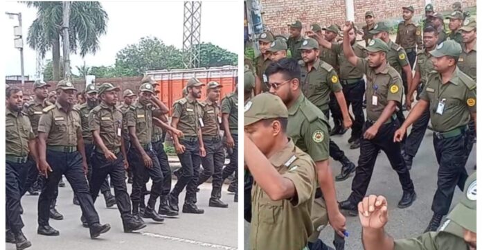 যশোর অফিস : চাকরি জাতীয়করণের দাবিতে বাংলাদেশের বৃহত্তম স্থলবন্দর বেনাপোলে কর্মরত আনসার সদস্যরা মিছিল ও সমাবেশ করছে।শুক্রবার সকালে বেনাপোল চেকপোস্ট থেকে মিছিল নিয়ে তারা বন্দর এলাকায় বিভিন্ন সড়ক প্রদক্ষিণ করেন। বেনাপোল স্থলবন্দর আনসার ক্যাম্পের প্লাটুন কমান্ডার মাসুদুর রহমান মাসুদ এই মিছিল ও বিক্ষোভ সমাবেশের নেতৃত্ব দেন। মাসুদুর রহমান মাসুদ বলেন,চাকরি জাতীয়করণের দাবিতে সারাদেশে আনসার সদস্যরা আন্দোলন সংগ্রাম করছে,তাদের প্রতি সংহতি জানাতেই আমরা মাঠে নেমেছি। আনসার সদস্যরা ১৯৪৮সাল থেকে ২০২৪ সাল পর্যন্ত দেশ ও জাতির কল্যানে অনেক গুরুত্বপূর্ণ দায়িত্ব পালন করে আসছেন। ফলে আমাদের এই বাস্তব সম্মত দাবী মেনে নেওয়ার জন্য সরকারের কাছে দাবী জানাচ্ছি। বিক্ষোভকারী আনসার সদস্যরা বলেন,আমরা সরকারি অন্যান্য বাহিনীর থেকে কম কষ্ট করি না। র্যাব-পুলিশ যখন পালিয়ে ছিল, তখন আমরাই দেশের নিরাপত্তার জন্য কাজ করেছি। অথচ তাঁদের থেকে আমরা এখনো সুযোগ-সুবিধা কম ভোগ করছি। এছাড়াও আমাদের এখনো চাকরির নিশ্চয়তা নেই।’ এ সময় তাঁরা নানান স্লোগান দিতে থাকেন।জানা গেছে, সারাদেশে ৫৩ হাজার আনসার সদস্য রয়েছেন। তারা চান ব্যাটালিয়ন আনসারের মতো চাকরির জাতীয়করণ।