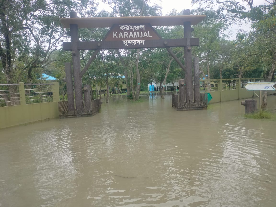 সুন্দরবন পূর্ব বনবিভাগের চাঁদপাই রেঞ্জের করমজল পর্যটন ও বন্যপ্রাণী প্রজনন কেন্দ্রের ভারপ্রাপ্ত কর্মকর্তা মোঃ আজাদ কবির বলেন, গত তিন দিন ধরে সুন্দরবনের ভিতরে পানি বেড়েছে। তলিয়ে গেছে বনসহ বনের করমজল পর্যটন কেন্দ্রের রাস্তাঘাট। তবে পানিতে বনের ও করমজলের বন্যপ্রানীর কোন ক্ষয়ক্ষতি এখনও পর্যন্ত চোখে পড়েনি বলে জানান তিনি। তিনি বলেন, বনের অভ্যন্তরে উঁচু টিলা থাকায় সেখানে আশ্রয় নিতে পারছে বন্যপ্রানীরা। সুতরাং বন্যপ্রাণীর ক্ষয়ক্ষতির আশংকা তেমন একটা নেই।