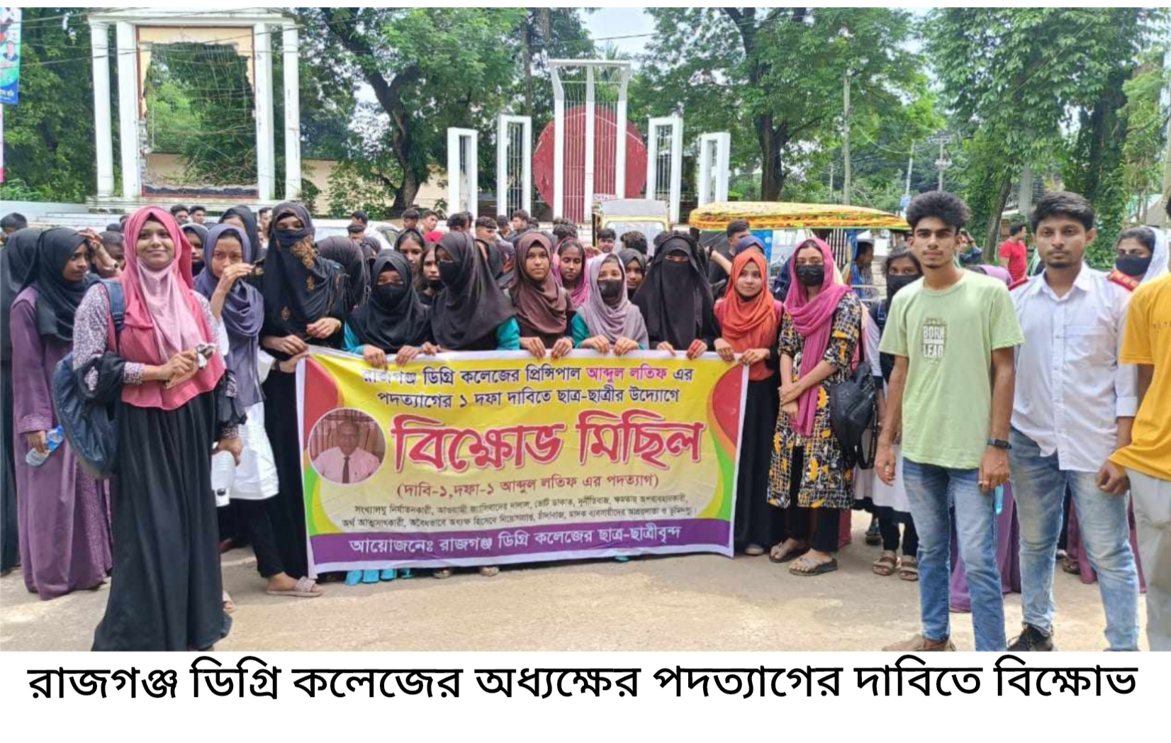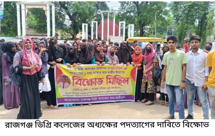 জি,এম ফারুখ (স্টাফ রিপোর্টার) মণিরামপুর উপজেলার রাজগঞ্জ ডিগ্রি কলেজের অধ্যক্ষ আব্দুল লতিফের অনিয়ম, দুর্নীতি, ক্ষমতার অপব্যবহার ও স্বেচ্ছাচারিতার অভিযোগ এনে তার পদত্যাগ দাবিতে বৈষম্য বিরোধী ছাত্রদের ব্যানারে সাধারণ শিক্ষার্থীদের বিক্ষোভ মিছিল, সড়ক অবরোধ কর্মসূচী পালিত হয়েছে। এসময় বিক্ষুব্ধ ছাত্রছাত্রীরা রাজগঞ্জ ডিগ্রী কলেজের অধ্যক্ষের পদ থেকে পদত্যাগের জন্য ৭২ ঘন্টার আল্টিমেটাম দিয়েছিলেন গত ২৫শে আগষ্ট। নির্দিষ্ট ৭২ ঘন্টা পার হলেও কোন ইতিবাচক সাড়া না পেয়ে আজ ২৮ আগষ্ট পুনরায় অধ্যক্ষ আব্দুল লতিফের পদত্যাগ দাবিতে বৈষম্য বিরোধ ছাত্রদের ব্যানারে সাধারণ শিক্ষার্থীদের বিক্ষোভ মিছিল, সড়ক অবরোধ কর্মসূচী পালিত হয়েছে। এসময় ছাত্র ছাত্রীরা অভিযোগ করেন, সব কলেজের মাসিক ফি ছিলো ৫০ টাকা হলেও রাজগঞ্জ ডিগ্রি কলেজে নেওয়া হয়েছে ১৫০টাকা, কলেজের অস্থায়ী মসজিদ ভেঙ্গে পার্কিং করেছে সে ইসলাম বিরোধী, কলেজের দারোয়ান স্বতো কে জন সম্মুখে ব্যাপক প্রহার ও নির্যাতন করা হয়েছে, রাজগঞ্জ বাজারে কোর্টের রায় উপেক্ষা করে অর্ধ শতাধিক দোকান ভেঙ্গে দিয়ে কিছু গরীব ও অসহায় মানুষের রুটি রুজির উপর হাত দিয়েছে এই অধ্যক্ষ, রাজগঞ্জ বাজারের সংখ্যালঘু সনাতন সমাজের দোকানদার হাসুকে জনসম্মুখে প্রহার ও নির্যাতনকারী এই মাস্তান উগ্রসন্ত্রাসী অধ্যক্ষের পদত্যাগ চাই। আওয়ামী লীগের বিভিন্ন অনুষ্ঠানে বিশেষ করে বিগত মুজিব বর্ষে রাজগঞ্জ বাজারের অধিকাংশ দোকানদারদের কাছ থেকে জোর পূর্বক মোটা অংকের চাঁদা আদায়, রাজগঞ্জ বাজারে প্রকাশ্য দিবালোকে হাজার হাজার মানুষের সামনে একজন অসহায় ও দরিদ্র নারী মাজেদা এবং তার বোন মুক কে প্রহার ও নির্যাতন করেছিলেন এই অধ্যক্ষ, রাজগঞ্জ বাজারে মুজিবের মোরাল এবং অডিটোরিয়াম তৈরিতে অতিরিক্ত বাজেট দেখিয়ে রাষ্ট্রীয় অর্থ আত্মসাৎ করেছেন, রাজগঞ্জ হাইস্কুলের ব্যবস্থাপনা কমিটির সভাপতি থাকাকালীন স্কুলের পুরাতন বিল্ডিং এর ইট রড আসবাব সহ বিভিন্ন সামগ্রী বিক্রির টাকা আত্মসাৎ, স্কুলের মাঠে মাটি ভর্তির সময় অল্প মাটি ফেলে হিসাবে গরমিল দেখিয়ে অর্থ আত্মসাৎ, স্কুলের পার্কের নামের অর্থ বরাদ্দ করে নিজে সেই রাষ্ট্রীয় অর্থ হজমকরা, স্কুলের পাশে বাঁওড়ের ধারদিয়ে বাধ কাম সিড়ির প্রকল্প থেকে অর্থ আত্মসাৎ সহ রাজগঞ্জ বাজারের বয়োজেষ্ঠ নাগরিক নুরুল হকের মার্কেটে লুটপাট করে প্রায় কোটি টাকা আত্মসাৎ এবং কোর্টের রায় উপেক্ষা করে মার্কেট ভবন ভেঙ্গে সেখানে দলীয় অফিস নির্মান এবং বাকী যায়গায় হকারদের নামে বরাদ্দ দিয়ে তাদের কাছ থেকে মোটা অংকের টাকা আত্মসাৎ কারী এই লুটপাটকারী এবং নাশকতাকারী অধ্যক্ষের পদত্যাগ চেয়ে মনিরামপুর নির্বাহী অফিসারের ন
