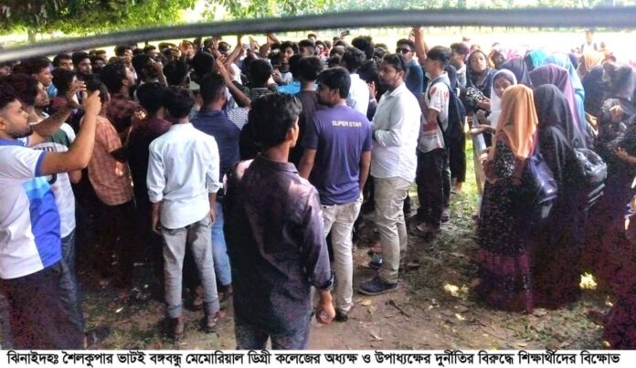 শৈলকুপায় অধ্যক্ষ ও উপাধ্যক্ষের বিরুদ্ধে নিয়োগ বানিজ্য  ফান্ড তছরুপ ও সভাপতির সাক্ষর জাল নিয়ে  শিক্ষার্থীদের বিক্ষোভ পদত্যাগ দাবী