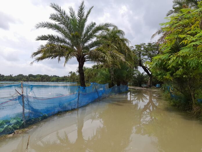 গত কয়েকদিনের লাগাতার অতিবৃষ্টি ও প্রবল বর্ষণের কারণে জয়ান্তা, খোলাডাঙ্গা, গাইদগাছি, পদ্মবিলা, ঘুনি, শাখারীগাতি, ধলিরগাতি, প্রেমবাগ, বনগ্রাম প্লাবিত হয়েছে। ক্ষতিগ্রস্ত হয়েছে অনেক বসতবাড়ি। এসব অঞ্চলের বেশিরভাগ মাছের ঘের ভেসে বিশাল জলাকারে পরিণত হয়েছে। সাথে চাষকৃত ঘেরের মাছগুলো বেরিয়ে গেছে উন্মুক্ত জলাকারে। মোটা অংকের পুঁজি খাটিয়ে এবার মহাবিপদে পড়েছেন মাছ চাষীরা। প্রায় পথে বসে গেছেন বেশ কয়েকজন মাছ চাষী। শুক্রবার সরেজমিনে গিয়ে দেখা যায় দূর সীমানা পর্যন্ত জলরাশি একাকার হয়ে বিশাল সমুদ্রের রূপ ধারণ করেছে। দৃষ্টিসীমায় শুধু প্লাবন সাদৃশ্য বিশাল জলাকার। আর এই জলাকারে হারিয়ে গেছে মাছ চাষীদের স্বপ্ন। মারা গেছে ঘের ব্যবসায়ীদের সকল সম্ভাবনা। নির্বাক দৃষ্টিতে অপলকে বিশাল জলরাশির মধ্যে আটকে গেছে তাদের দৃষ্টিশক্তি।