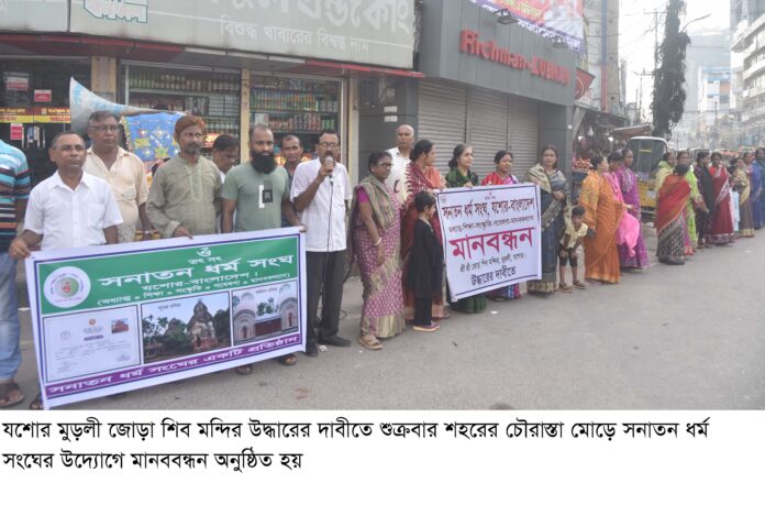 যশোরে সনাতন ধর্ম সংঘের মানববন্ধন মুড়লি জোড়া শিব মন্দির উদ্ধার দবি