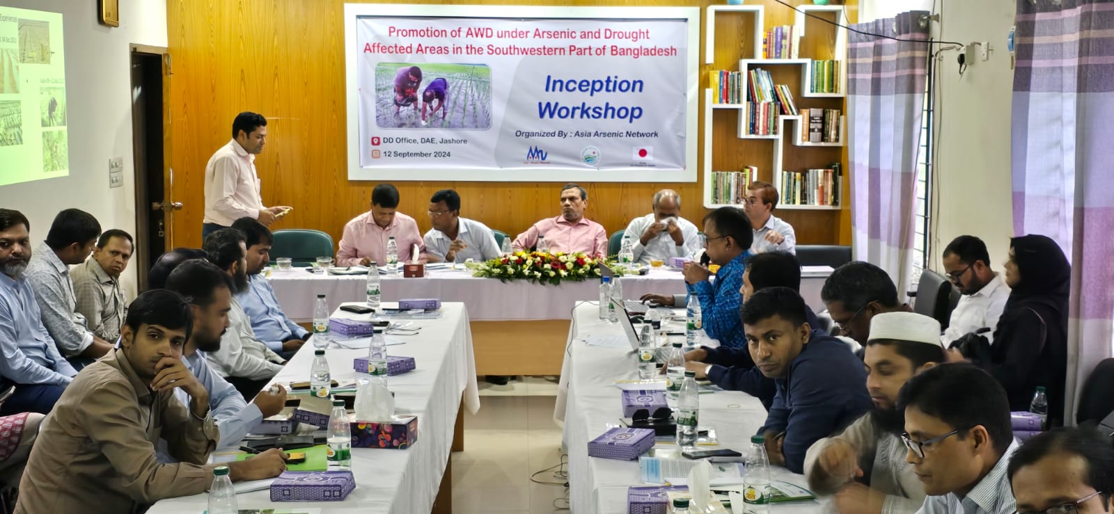 যশোর প্রতিনিধি : এশিয়া আর্সেনিক নেটওয়ার্ক (এএএন) কর্তৃক বাস্তবায়িত “বাংলাদেশের দক্ষিন-পশ্চিমাঞ্চলের খরা ও আর্সেনিক প্রবণ এলাকায় পানি সাশ্রয়ী (এ্ডব্লিউডি) প্রযুক্তির সম্প্রসারণ প্রকল্প” অবহিতকরন কর্মশালা বৃহস্পতিবার সকালে (১২ সেপ্টেম্বর  উপ-পরিচালকের কার্যালয়, কৃষি সম্প্রসারণ অধিদপ্তর, যশোর এর সম্মেলন কক্ষে অনুষ্ঠিত হয়। উক্ত অনুষ্ঠানের প্রধান অতিথি হিসেবে উপস্থিত ছিলেন কৃষি সম্প্রসারণ অধিদপ্তর, যশোর অঞ্চল এর অতিরিক্ত পরিচালক দীপক কুমার রায়। বিশেষ অতিথি হিসাবে উপস্থিত ছিলেন জাপানের সেকেন্ড সেক্রেটারি, এম্বাসি অব ‌দায়েচি ইয়োসাকা।অনুষ্ঠানে সভাপতিত্ব করেন, বাংলাদেশ এশিয়া আর্সেনিক নেটওয়ার্কের নির্বাহী পরিচালক এম, শফিকুল ইসলাম। কর্মশালায় যশোর, চুয়াডাঙ্গা ও কুষ্টিয়া অঞ্চলের কৃষি সম্প্রসারণ অধিদপ্তরের জেলা ও উপজেলা পর্যাযের কর্মকর্তাবৃন্দ, বাংলাদেশ ধান গবেষণা ইনিস্টিটিউট এর মূখ্যবৈজ্ঞানিক কর্মকর্তা, মৃত্তিকা সম্পদ উন্নয়ন ইনিস্টিটিউট, বাংলাদেশ কৃষি উন্নয়ন কর্পোরেশন এর নির্বাহী প্রকৌশলী,এশিয়া আর্সেনিক নেটওয়ার্কের বিভিন্ন পর্যায়ের কর্মকর্তাবৃন্দ, এনজিও প্রতিনিধিবৃন্দ এবং সাংবাদিকবৃন্দ উপস্থিত ছিলেন। এছাড়া এএএন জাপান থেকে অনলাইনে যুক্ত ছিলেন প্রফেসর ইয়োকোতা হিরোশি এবং তামিকো ইশিয়ামা।সভাপতির বক্তব্যের মাধ্যমে অনুষ্ঠান শুরু হয়। টেকনিক্যাল সেশনে এশিয়া আর্সেনিক নেটওয়ার্কের কার্যক্রম বিষয়ে উপস্থাপন করেন তামিকো ইশিয়ামা। এরপর ভূ-গর্ভঃস্থ পানিতে আর্সনিক দূষণ বিষয়ক গবেষণা ফলাফল উপস্থাপন করেন এশিয়া আর্সেনিক নেটওয়ার্কের কনসালটেন্ট  শামীম উদ্দিন। অত:পর টেকসই কৃষি প্রযুক্তি-২ (স্যাপ-২) বিষয়ে উপস্থাপনা করেন প্রফেসর ড: আবিয়ার রহমান। সবশেষে “বাংলাদেশের দক্ষিনপশ্চিমাঞ্চলের খরা ও আর্সেনিক প্রবণ এলাকায় পানি সাশ্রয়ী (এ্ডব্লিউডি) প্রযুক্তির সম্প্রসারণ প্রকল্প” কার্যক্রম বিষয়ে উপস্থাপন করেন প্রকল্পের এরিয়া ম্যানেজার কৃষিবিদ মোঃ মাহবুবুল আলম। উক্ত অনুষ্ঠানে উপস্থিত সকলে মতামত ও পরামর্শ প্রদান করেন। প্রকল্পের সফলতার জন্য সার্বিক সহযোগিতার আশ^াস দেন।  অনুষ্ঠানটি সঞ্চালনা করেন এশিয়া আর্সেনিক নেটওয়ার্কের আঞ্চলিক ব্যবস্থাপক  রেজাউল করিম।