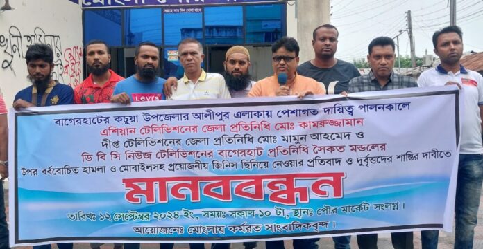 সাংবাদিকদের ওপর হামলার প্রতিবাদে মোংলায় মানববন্ধন