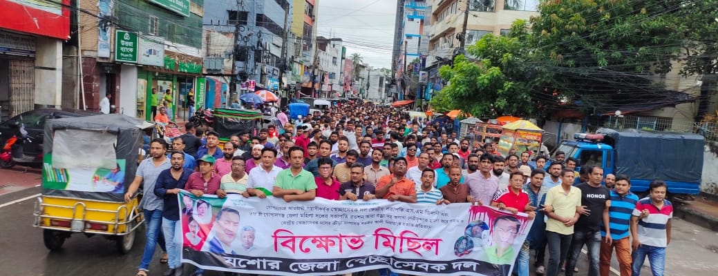 গোপালগঞ্জে সন্ত্রাসী কর্তৃক কেন্দ্রীয় স্বেচ্ছাসেবক দলের নেতৃবৃন্দের ওপর বর্বোরচিত হামলার প্রতিবাদে যশোর জেলা স্বেচ্ছাসেবক দল আয়োজিত বিক্ষোভ মিছিল ও সমাবেশে