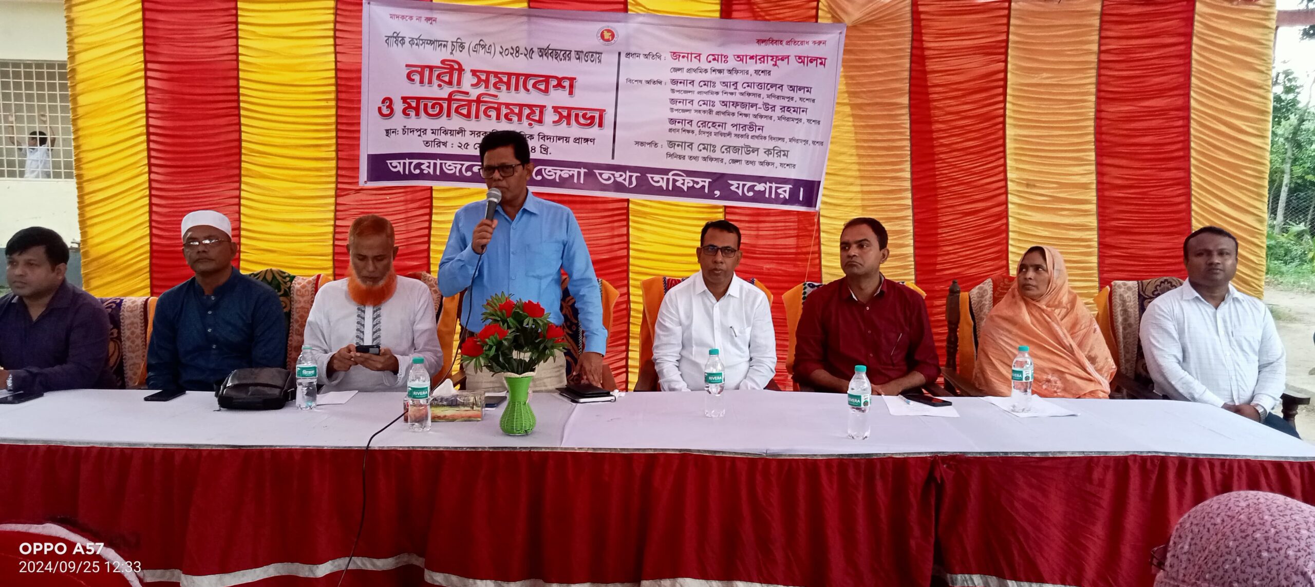 বার্ষিক কর্মসম্পাদন চুক্তি(এপিএ) ২০২৪-২৫ অর্থবছরের আওতায় যশোর জেলা তথ্য অফিসের উদ্যোগে বুধবার সকালে মণিরামপুর উপজেলার চাঁদপুর মাঝিয়ালি সরকারি প্রাথমিক বিদ্যালয় প্রাঙ্গণে নারী সমাবেশ ও মতবিনিময় সভা অনুষ্ঠিত হয়। নারী সমাবেশে প্রধান অতিথি হিসেবে উপস্থিত ছিলেন যশোর জেলা প্রাথমিক শিক্ষা অফিসার মো: আশরাফুল আলম।