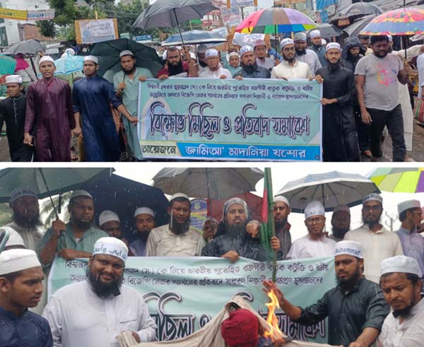 যশোর অফিস : রাসূলকে নিয়ে কটুক্তির প্রতিবাদে যশোরে বিক্ষোভ সমাবেশ, মিছিল ও কুশপুত্তলিক দাহ করা হয়েছে। ইসলাম ধর্ম ও রাসুল হযরত মুহাম্মাদকে (সা.) কে নিয়ে ভারতে হিন্দু পুরোহিতদের কটূক্তির প্রতিবাদে বিক্ষোভ মিছিল করেছে সাধারণ শিক্ষার্থী ও ধর্মপ্রাণ মুসলমান। আজ বৃহস্পতিবার (২৬ সেপ্টেম্বর) দুপুরে যশোর শহরতলীর পুলেরহাট মোড় থেকে ভারতের বিজেপির অনুগ্রহ প্রাপ্ত ধর্মগুরু রামগিরি মহারাজ কর্তৃক বিশ্বনবী হযরত মুহাম্মদ সা. কে নিয়ে কটুক্তি করায় যশোর জামি’আ মাদানিয়া মাদ্রাসার উদ্যোগে বিক্ষোভ সমাবেশ এবং মিছিলটি অনুষ্ঠিত হয়।