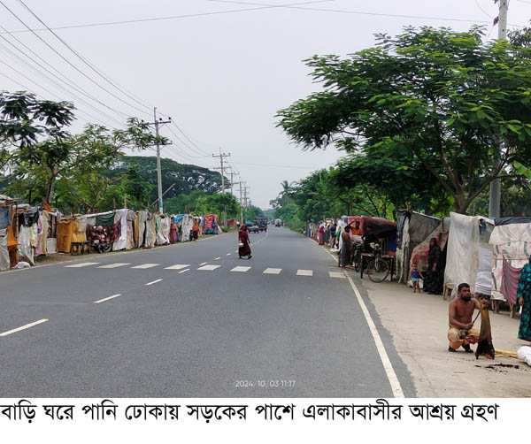 এ অবস্থার সৃষ্টি হয়েছে। পানি মানুষের বাড়ি ঘরে ঢুকে পড়ায় বাধ্য হয়েই উঁচু স্থানে