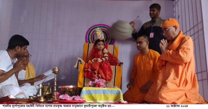 আশ্রম ও মিশনে সকাল সাড়ে ১০ টার দিকে হয়েছে কুমারী পূজা।