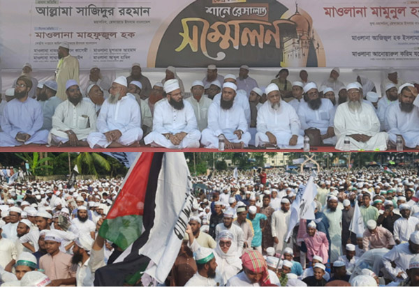 যশোর অফিস : যশোরে হেফাজতে ইসলাম বাংলাদেশ শানে রেসালত সম্মেলন অনুষ্ঠিত হয়েছে। মঙ্গলবার দুপুর থেকে নেতাকর্মীদের উপস্থিতিতে বিকেল সাড়ে পাঁচটা পর্যন্ত যশোর শহরস্থ কেন্দ্রীয় ঈদগাহ ময়দানে এই সম্মেলন অনুষ্ঠিত হয়েছে। হেফাজতে ইসলাম বাংলাদেশ যশোর জেলা শাখার উদ্যোগে সংগঠনের সভাপতি ও কেন্দ্রীয় নায়েবে আমির মাওলানা আনোয়ারুল করিম যশোরীর সভাপতিত্বে শানে রেসালাত সম্মেলনে প্রধান অতিথি হিসেবে বক্তব্য রাখেন আল্লামা সাজিদুর রহমান। এ সময় প্রধান বক্তা হিসেবে উপস্থিত ছিলেন হেফাজতে ইসলাম বাংলাদেশ মহাসচিব মাওলানা মামুনুল হক, ‘তিনি বলেন, প্রধান বক্তা বক্তব্যে বলেন, ২০১৩ সালে ৫ ই মে শাপলা চত্বরে হেফাজতে ইসলামের মহাসমাবেশে স্বৈরাচার হাসিনা সরকার যে নির্মমভাবে গনহত্যা নির্যাতন করেছে তার নিন্দা জানান। ২০২১ সালে হাটহাজারী থেকে ব্রাহ্মনবাড়িয়ার পর্যন্ত অসংখ্য হেফাজতে ইসলামের নেতা কর্মীদের হত্যা করে। আওয়ামী লীগ ইসলাম বিদ্বেষী কুরআন বিদ্বেষী দল ।এরা পাখির মত গুলি করে গণহত্যা করেছে,সন্ত্রাসীর রাজনীতি করেছে এদের বাংলার জমিনে রাজনীতি করার অধিকার নাই ।আগামীতে যারা রাষ্ট্র পরিচালনা করবেন ইসলামকে মেনে রাষ্ট্র পরিচালনা করতে হবে। যেদিন শাপলা চত্বরে হেফাজতের মহাসমাবেশের উলামা কেরামদের নির্যাতন করে সে দিন থেকে হাসিনা সরকারের পতন শুরু হয়েছে। হেফাজতে ইসলাম অনেক রক্তের বিনিময়ে টিকে আছে। হেফাজতে ইসলাম অনেক রক্ত দিয়ে বাংলাদেশ স্বাধীন করেছে। সাম্রাজ্যবাদের প্রতিটি দেশকে হুঁশিয়ারি দিয়ে বলেন সেন্ট মার্টিন থেকে দেশের কোন অংশ কেউ ক্ষতি করে চাইলে হেফাজতে ইসলাম তাকে ছেড়ে দেবে না। হেফাজতে ইসলামের মুল উদ্দেশ্য হলো ইসলামের উপর আঘাত আসলে তা প্রতিরোধ করা। যখন ইসলামের উপর আঘাত আসবে তা প্রতিহত করতে হবে। ফ্যাসিবাদী স্বৈরাচারী সরকারের শাসন আমলে ইসলাম ওলামায়ে কেরাম সবচেয়ে বেশি নির্যাতিত হয়েছে। গত ১৫ বছর যাবত আমাদের মসজিদ, মাদ্রাসা ওলামায়ে কেরামগণ কেউ নিরাপদ ছিল না সেই নিরাপদ হীনতা ভেঙে আমরা উত্তীর্ণ হতে পারেছি। ছাত্র-জনতাকে আহ্বান করে বলেন অনেক কষ্টে অর্জিত এই স্বাধীনতা কেউ যেন ছিনিয়ে নিতে না পারে। স্বৈরাচারী সরকারের দোসরা এখনো দেশের মধ্যে রয়েছে শেখ হাসিনা সহকিছু লোক বিদেশে গিয়ে ষড়যন্ত্র করছে। আমাদের সকলকে ঐক্যবদ্ধ হয়ে ইসলামকে হেফাজত করতে হবে। আমাদের দেশকে, দুর্নীতি মুক্ত, ঘুষ মুক্ত করতে হবে। যেখানে ইসলামের অবমাননা করা হবে সেখানে প্রতিরোধ গড়ে তুলতে হবে। যে রাজনৈতিক দল ইসলামকে হেফাজত করবে আমরা তাদের সমর্থন করবো। প্রধান অতিথি বলেন, বাংলাদেশের শিক্ষা ব্যবস্থা নাস্তিক্তবাদী। এই শিক্ষাব্যবস্থা পরিবর্তন করতে হবে। ওলামায়ে একরামের পরামর্
