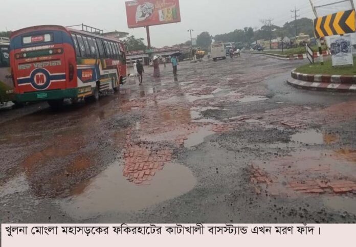 মেহেদী হাসান বাগেরহাট : খুলনা-মোংলা ও বাগেরহাট মহাসড়কের জনবহুল ও গুরুত্বপূর্ণ কাটাখালী বাসস্ট্যান্ড ৮রাস্তা মোড়ের পিচঢালা রাস্তার পিচ উঠে বড়বড় গর্তের সৃষ্টি হয়ে তা এখন যানবাহন ও পথচারী চলাচলের চরম সমস্যার করণ হয়ে দাড়িয়েছে। অতিদ্রæত মোড়ের পিচঢালা রাস্তা পূণঃ সংস্কার করা না হলে যানবাহন চলাচলে চরম বাঁধা হয়ে দাড়াবে। এব্যাপারে প্রয়োজনীয় ব্যবস্থা গ্রহনের জন্য স্থানীয় এলাকাবাসি সড়ক ও জনপদ বিভাগের হস্তক্ষেপ কামনা করেছেন। জানা গেছে, খুলনা মোংলা, বাগেরহাট-খুলনা ও ঢাকা মাওয়া মহাসড়কের কাটাখালী বাসস্ট্যান্ড একটি জনবহুল ও গুরুত্বপূর্ণ মোড় হিসাবে দেশের বিভিন্ন স্থানে এর সুপরিচিতি রয়েছে। মোংলা বা খুলনা হতে রাজধানী ঢাকা বা চট্টগ্রামে যাতায়াতের জন্য এই কাটাখালী বাসস্ট্যান্ডের গুরুত্ব সবচেয়ে বেশি। কারণ এই মোড়ের উপর দিয়েই দেশের সর্ব স্থানে যাতায়াত করতে হয়। তাছাড়া দেশের দ্বীতিয় বৃহত্তর মোংলা বন্দরের সকল আমদানী রপ্তানীকৃত পণ্য সড়ক পথে যাতায়াতের প্রধান মাধ্যম হচ্ছে কাটাখালী বাসস্ট্যান্ড। এই বাসস্ট্যান্ডকে অতিক্রম করেই দেশের সব স্থানে যাতায়াত করতে হয়। কিন্তু পরিতাপের বিষয় হচ্ছে এই ৮রাস্তার মোড়ের উপর পিচঢালা রাস্তার পিচ উঠে বড়বড় গর্তের সৃষ্টি হয়ে তা এখন মরণ ফাঁদে পরিনত হয়েছে। সড়ক ও জনপদ বিভাগ পিচঢালা রাস্তার পিচ উঠে বড়বড় গর্তের সৃষ্টি হওয়ায় তারা মাঝে মধ্যে সেই গর্তে কিছু ইটের সলিং বা খোয়া ফেলে নির্মাণ করে যানবাহন চলাচলে সুবিধা করে দিলেও তা ক্ষনিকের জন্য। কিন্তু একটু বৃষ্টি হলেই আবারও গর্তের সৃষ্টি হয়ে তা যানবাহন চলাচলে অযোগ্য হয়ে পড়ে। স্থানীয় এলাকাবাসি সরদার জাকির হোসেন, আবু তাহের, ওবাইদুল ও আনিছুর রহমান সহ একাধিক ব্যক্তিরা জানান, সড়ক বিভাগ ইটের সলিং নির্মাণ করে গর্ত বন্ধ করে দেওয়ার পর একটু বুষ্টি হয়েই পূনঃরায় একই অবস্থার সৃষ্টি হয়। আর সেই সময়ে গর্তে ভিতর পড়ে অনেকে গুরুত্বর আহত হচ্ছেন। মোড়ের উপর ভেঙ্গেচুরে এমন অবস্থার সৃষ্টি হয়েছে যে তা নিজে চোখে না দেখলে বুঝার উপর নেই যে কতবড় বিপদ এখানে। তারা আরও বলেন প্রায় সময়ে অধিকাংশ মটর সাইকেল ভ্যান রিক্সা বা ইজিবাইক ও মাহেন্দ্র চালকরা এখানে এসে নিয়ন্ত্রন হারিয়ে ফেলে দুর্ঘটনার কবলে পড়েন। শুধু তাই নয়, বাস ট্রাক ও পরিবহনের চাকা এখানে এসে নষ্ট হয়ে পড়ে। সে সময়ে তীব্র যানজাটের সৃষ্টি হয়। এব্যাপারে বাসস্ট্যান্ডটি পূণঃ সংস্কারের জন্য স্থানীয় এলাকাবাসির ও যানবাহন চালকরা সড়ক ও জনপদ বিভাগের উর্দ্ধতন কর্মকতাদের হস্তক্ষেপ কামনা করেছেন।