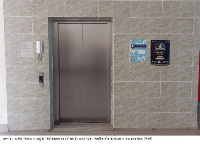 স্টাফ রিপোর্টার : যশোর বিজ্ঞান ও প্রযুক্তি বিশ্ববিদ্যালয়ের (যবিপ্রবি) আলোচিত ‘লিফটকাণ্ড’র সেই ১৪টি লিফট নিয়ে বিপাকে পড়েছে বিশ্ববিদ্যালয়। ১০টি লিফট অকেজো ও বন্ধ হয়ে পড়ে আছে। লিফট সচল করতে সরবরাহকারী প্রতিষ্ঠান প্রপার্টি ডেভেলপমেন্ট লিমিটেড’কে একাধিকবার বলা হলেও তারা কোনো পদক্ষেপ নেয়নি। দরপত্রের শর্ত লঙ্ঘন করে স্থাপন করা লিফটগুলো নিয়ে হাইকোর্টের নির্দেশে দুদক ও ইউজিসি ‘অনিয়ম ও দুর্নীতির’ বিষয়টি তদন্ত করছে। প্রায় ১০ কোটি টাকার এই কাজে প্রায় ৫ কোটি টাকার অনিয়ম ও দুর্নীতির অভিযোগ রয়েছে। এদিকে, শিক্ষার্থীরা বলছেন, শর্ত লঙ্ঘন করে সরবরাহ করা লিফট বারবার অকেজো হয়ে পড়ছে। ফলে ঝুঁকি নিয়ে এগুলো চালু করলে কোনো দুর্ঘটনা ঘটলে তার দায় কে নেবে; এ প্রশ্নের উত্তর মিলছে না। সংশ্লিষ্ট সূত্র জানায়, ২০২২ সালের শুরুতে যশোর বিজ্ঞান ও প্রযুক্তি বিশ্ববিদ্যালয়ের (যবিপ্রবি) চারটি ভবনের (জগদীশ চন্দ্র বসু একাডেমিক ভবন, মুন্সী মেহেরুল্লাহ হল, তারামন বিবি হল ও টিএসসি ভবন) জন্য ১৪টি লিফট স্থাপনের জন্য দরপত্র আহ্বান করা হয়। নয় কোটি ৩৭ লাখ টাকার ১৪টি লিফটের মালামাল সরবরাহ করে ঠিকাদারি প্রতিষ্ঠান প্রপার্টি ডেভেলপমেন্ট লিমিটেড। তখন অভিযোগ ওঠে, দরপত্রের স্পেসিফিকেশন পরিবর্তন করে ১৪টি লিফটের এই মালামাল সরবরাহ করা হয়েছে। এর মধ্যে অন্যতম ছিল, ‘মেশিনরুম টাইপ’এর পরিবর্তে ‘মেশিনরুম লেস টাইপ’ এবং ‘ডোর সাইজ’ ও ‘মোটর পাওয়ার’ কম। এর মাধ্যমে প্রায় ৫ কোটি টাকার অনিয়ম ও দুর্নীতি হয়েছে। সূত্র আরও জানায়, যবিপ্রবি’র আলোচিত এই ‘লিফটকাণ্ড’ নিয়ে বিভিন্ন পত্র-পত্রিকায় সংবাদ প্রকাশিত হয় এবং হাইকোর্টে রিট হলে উচ্চ আদালত ‘লিফটকাণ্ড’ তদন্তের জন্য দুর্নীতি দমন কমিশন (দুদক) ও বাংলাদেশ বিশ্ববিদ্যালয় মঞ্জুরি কমিশনকে (ইউজিসি) নির্দেশ প্রদান করে। দুদক যশোর সমন্বিত কার্যালয়ের উপ-পরিচালক মো. আল-আমিন বলেন, উচ্চ আদালতের নির্দেশের আগেই যবিপ্রবি’র আলোচিত ‘লিফটকাণ্ড’ নিয়ে দুদক অনুসন্ধান শুরু করে। অনুসন্ধান প্রক্রিয়া চূড়ান্ত পর্যায়ে রয়েছে। দ্রুতই এ ব্যাপারে প্রতিবেদন দাখিল করা হবে। এদিকে, যবিপ্রবি’র এই ১০টি লিফটের ১০টিই অকেজো ও বন্ধ হয়ে পড়ে আছে। ফলে শিক্ষক ও শিক্ষার্থীরা পড়েছেন বিড়ম্বনায়। লিফট সচল করতে সরবরাহকারী প্রতিষ্ঠান প্রপার্টি ডেভেলপমেন্ট লিমিটেড’কে একাধিকবার বলা হলেও তারা কোনো পদক্ষেপ নেয়নি। সূত্র জানিয়েছে, জগদীশ চন্দ্র বসু একাডেমিক ভবনের ৪টি লিফটের মধ্যে ২টি সচল রয়েছে; মুন্সী মেহেরুল্লাহ হলের ৪টি লিফটের সবগুলোর বন্ধ রয়েছে; তারামন বিবি হলের ৪টি লিফটের মধ্যে একটি মাত্র লিফট পাঁচতলা পর্যন্ত ওঠানামা করছে, বাকীগুলো বন্ধ রয়েছে এবং 