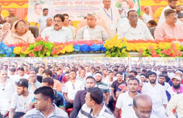 জাহিদ,ভ্রাম্যমান প্রতিনিধিঃ ‘চলো চলো ভবদহ চলো,পানি সরাও মানুষ বাঁচাও পানিবন্দী মানুষের পাশে দাঁড়াও ‘ স্লোগানকে সামনে নিয়ে ভবদহের জলাবদ্ধতার স্থায়ী সমাধানের লক্ষ্যে দশ দফা দাবিতে লং মার্চ ও গণজমায়েত করেছে বাংলাদেশ জাতীয়তাবাদী দল(বিএনপি)।রোববার বিকাল চার ঘটাকার সময় মণিরামপুর উপজেলা বিএনপি লং মার্চ ও গণজমায়েতের আয়োজন করে।মণিরামপুর উপজেলা বিএনপির আহবায়ক এ্যাডভোকেট শহীদ মোহাম্মদ ইকবাল হোসেনের সভাপতিত্বে ও ইউপি চেয়ারম্যান আক্তার ফারুক মিন্টুর সঞ্চালনায় অনুষ্ঠিত লংমার্চ ও গণ জমায়েতে প্রধান অতিথির বক্তব্য রাখেন বিএনপি’র খুলনা বিভাগীয় ভারপ্রাপ্ত সংগঠনিক সম্পাদক অনিন্দ ইসলাম অমিত। অন্যান্যের মধ্যে বক্তব্য রাখেন জেলা বিএনপি’র সভাপতি অধ্যাপক নার্গিস বেগম সাধারণ সম্পাদক সাবেরুল হক সাবু বিএনপি নেতা দেলোয়ার হোসেন খোকন,মারুফুল ইসলাম মারুফ,উপজেলা বিএনপির সিনিয়র আহ্বায়ক মোঃ মুছা,বিএনপি’ র অভয়নগর উপজেলা সভাপতি
