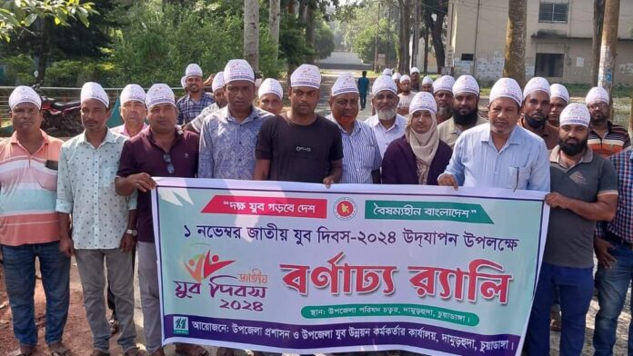 দামুড়হুদা (চুয়াডাঙ্গা) প্রতিনিধিঃ দামুড়হুদায় “দক্ষ যুব গড়বে দেশ,বৈষম্যহীন বাংলাদেশ”-এই স্লোগান কে সামনে রেখে জাতীয় যুব দিবস -২০২৪ পালিত হয়েছে। শুক্রবার বেলা সাড়ে ১০ টায় দামুড়হুদা উপজেলা প্রশাসন ও উপজেলা যুব উন্নয়ন অফিসের যৌথ আয়োজনে উপজেলা পরিষদ সভাকক্ষে উপজেলা যুব উন্নয়ন কর্মকর্তা জাহাঙ্গীর আলমের সভাপতিত্বে এ অনুষ্ঠান অনুষ্ঠিত হয়। অনুষ্ঠানে প্রধান অতিথি হিসেবে উপস্থিত ছিলেন,উপজেলা নির্বাহী অফিসার মমতাজ মহল।বিশেষ অতিথি হিসেবে উপস্থিত ছিলেন দামুড়হুদা প্রেসক্লাবের সভাপতি শামসুজ্জামান পলাশ,সাধারণ সম্পাদক তানজীর ফয়সাল।উপজেলা সহকারী যুব উন্নয়ন কর্মকর্তা রেজাউল করিমের সঞ্চালনায় অন্যান্যদের মধ্যে উপস্থিত ছিলেন