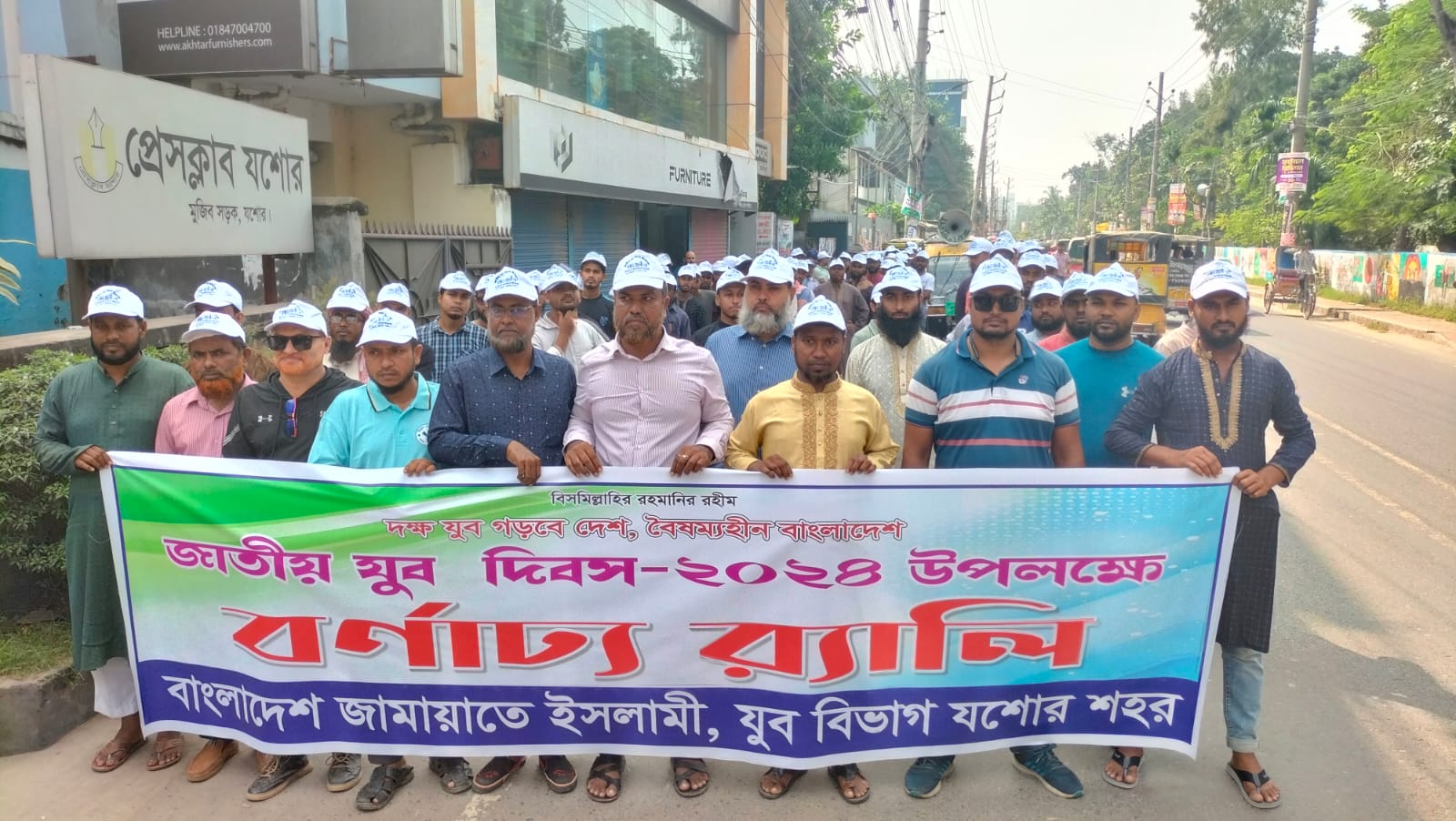 যশোর প্রতিনিধি : “দক্ষ যুবক গড়বে দেশ,বৈষম্যহীন বাংলাদেশ” এই প্রতিপাদ্যকে সামনে রেখে জাতীয় যুব দিবস উপলক্ষে যশোরে আনন্দ শোভাযাত্রা অনুষ্ঠিত হয়েছে। শুক্রবার সকাল ১১ টায় বাংলাদেশ জামায়াতে ইসলামী যুব বিভাগ যশোর শাখার উদ্যোগে প্রেসক্লাব যশোরের সামনে থেকে শুভযাত্রাটি শুরু হয়। বাংলাদেশ জামায়াতে ইসলামী যুব বিভাগ যশোর শাখার সভাপতি অ্যাডভোকেট শফিকুল ইসলামের সভাপতিত্বে শোভাযাত্রায় প্রধান অতিথি হিসেবে উপস্থিত ছিলেন বাংলাদেশ জামায়াত ইসলামী যশোর পৌর উত্তরের আমির নুর মামুন। শোভাযাত্রাটি শহরের গুরুত্বপূর্ণ সড়ক প্রদক্ষিণ করে উকিল বারে এসে শেষ হয়। শোভাযাত্রায় বাংলাদেশ জামায়াতে ইসলামী যুব বিভাগের ৫ শতাধিক নেতাকর্মী অংশগ্রহণ করেন।