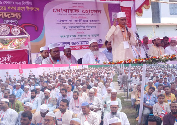 এ সময় ২০২৫-২৬ সেশনের যশোর জেলা জামায়াতের নির্বাচিত আমীর অধ্যাপক গোলাম রসুলকে শপথ বাক্য পাঠ করান অনুষ্ঠানের প্রধান অতিথি বাংলাদেশ জামায়াতে ইসলামীর কেন্দ্রীয় নির্বাহী পরিষদের সদস্য ও পরিচালক যশোর কুষ্টিয়া অঞ্চল মোবারক হোসেন।