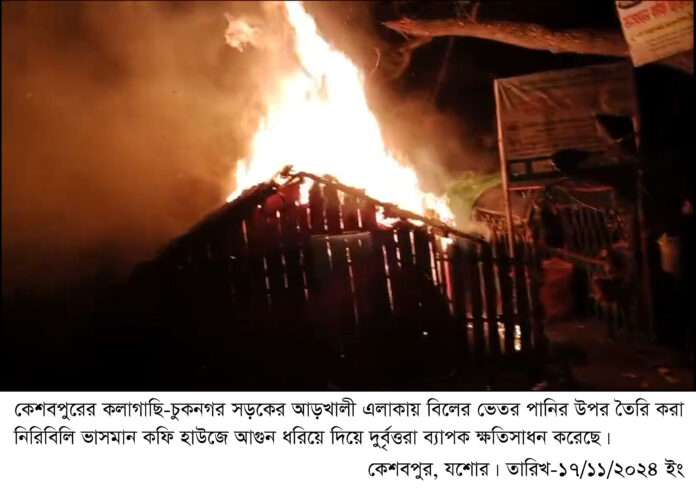 তৈরি করা নিরিবিলি ভাসমান কফি হাউজে আগুন ধরিয়ে দেয়। ওই প্রতিষ্ঠানের পরিচালক