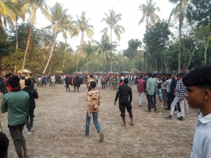 অভয়নগরে ষাঁড়ের লড়াই দেখতে মানুষের ঢল