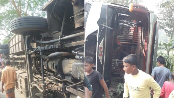 প্রত্যক্ষদর্শীরা বলেছেন দ্রুতগামী,পলাশ পরিবহন নামের যাত্রীবাহী বাসটি ঘটনাস্থলে পৌছুলে নিয়ন্ত্রণ হারিয়ে সড়কের পাশের খাদে উল্টে পড়ে যায়। এত করে বাসটির ব্যাপক ক্ষতি হয়। স্থানীয়রা ছুটে গিয়ে বাসের মধ্যে থাকা ২০ জন যাত্রীকে উদ্ধার করে। যারা সকলেই কমবেশি আহত হয়। আহতদের মধ্যে ৬জনের অবস্থা গুরুতর হয় তাদেরকে স্থানীয় ঝিকরগাছা উপজেলা স্বাস্থ্য কমপ্লেক্সে ভর্তি করা হয়। অন্যরা স্থানীয়ভাবে চিকিৎসা নিয়ে চলে যায়।