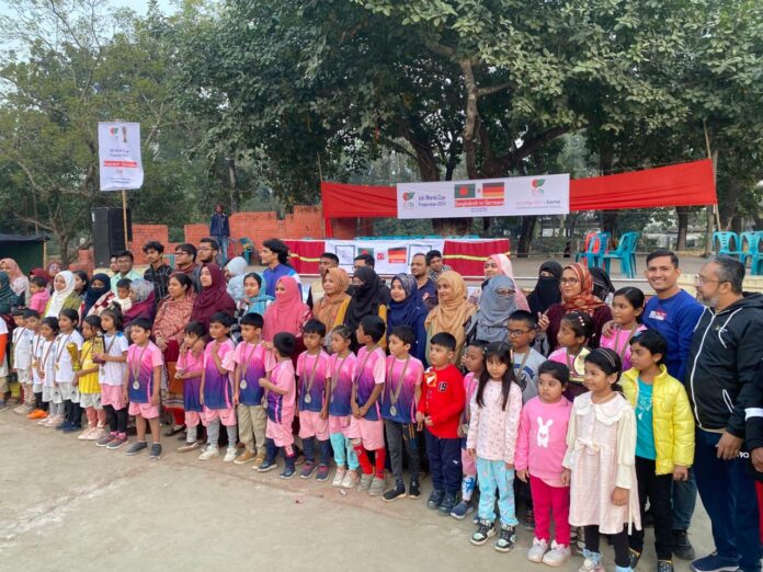 সংবাদ বিজ্ঞপ্তি : যশোরে বিটিএইচ ওয়ার্ল্ড কাপ প্রিপারেশন-২০২৪’র ফাইনাল ম্যাচে বাংলাদেশ দল চ্যাম্পিয়ন হয়েছে। শুক্রবার বিকেল ৩টায় শহরের মুন্শি মেহেরুল্লাহ ময়দানে (টাউন হল মাঠ) ফাইনাল ম্যাচটি অনুষ্ঠিত হয়। ২-১ গোলে জার্মানি টিমকে হারিয়ে চ্যাম্পিয়ন হয় বাংলাদেশ দল। প্রতিবছর ডিসেম্বর মাসে ব্রাদার টিটোস হোম স্কুল প্রতিষ্ঠানটির শিক্ষার্থীদের অংশগ্রহণে বিটিএইচ ওয়ার্ল্ড কাপ প্রিপারেশন’র আয়োজন করে।