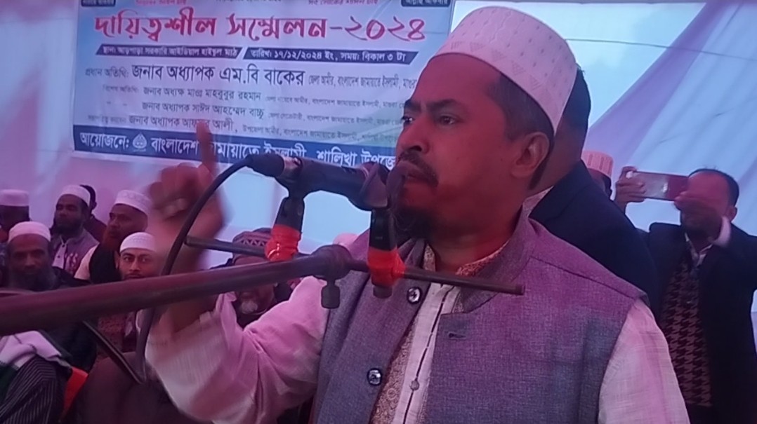 মঙ্গলবার (১৭ ডিসেম্বর) বিকালে বাংলাদেশ জামায়াতে ইসলামী শালিখা উপজেলা শাখার আয়োজনে আড়পাড়া সরকারি আইডিয়াল হাই স্কুল মাঠ প্রাঙ্গণে অনুষ্ঠিত দায়িত্বশীল সম্মেলন-২০২৪ প্রধান অতিথির বক্তব্যে এসব কথা বলেন, বাংলাদেশ জামায়াতে ইসলামী মাগুরা জেলা আমীর এম বি বাকের।