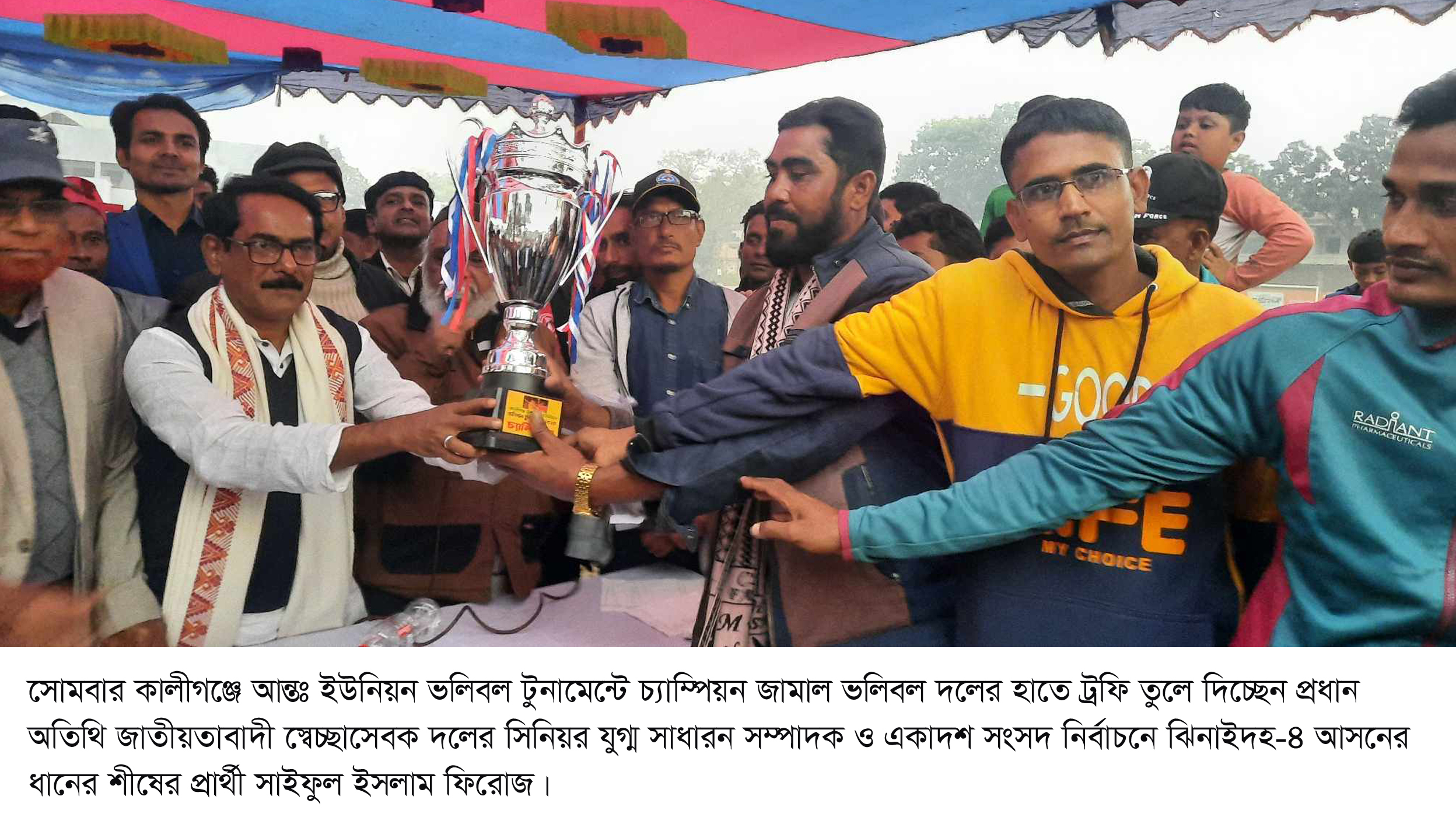 কালীগঞ্জে আন্তঃ ইউনিয়ন ভলিবল টুর্নামেন্ট কোলাকে হারিয়ে জামাল ইউনিয়ন চ্যাম্পিয়ন