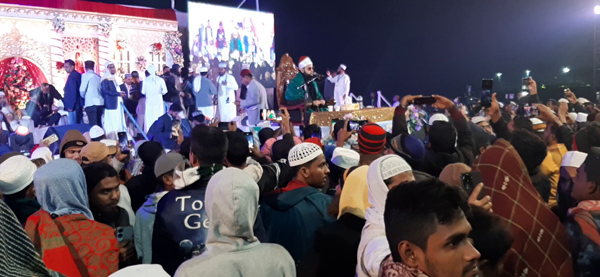 মানুষের সমাগম ঘটে। রাত সাড়ে ৯টার দিকে একে একে মঞ্চে