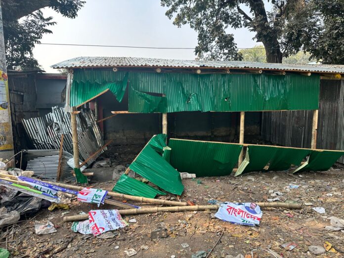 যশোর অফিস : যশোর শহরের শেখহাটি হাইকোর্ট মোড়ে শ্রমিক অধিকার পরিষদের দলীয় কার্যালয়টি ভাংচুর হয়েছে। গত শনিবার রাতে একদল দুষ্কৃতিকারী ওই দলীয় কার্যালয়টি ভাংচুর করেছে। এই ঘটনার প্রতিবাদে দলীয় লোকজন বিকেলে বিক্ষোভ মিছিল করেছে।