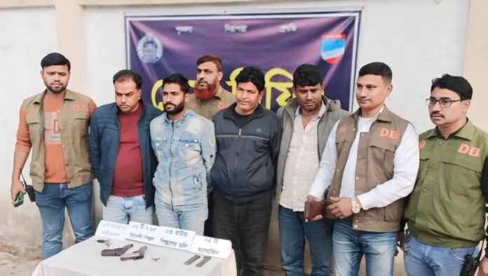 যশোর ডিবির ওসি দেব্রত হরি জানান, সদর উপজেলার নওয়াপাড়া ইউনিয়ন পরিষদের সামনে কে বা কারা ডাকাতির জন্য প্রস্তুতি নিচ্ছে এমন খবরের ভিত্তিতে ঐ এলাকায় অভিযান চালানো হয়। অভিযানে চারজনকে আটক করা হয় এবং তাদের কাছ থেকে দুটি বিদেশী পিস্তল, তিন রাউন্ড গুলি ও একটি মাইক্রোবাস উদ্ধার করা হয়।