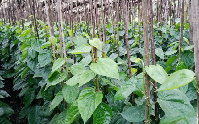 ও ভাবনা জাতের পানের চাষ হয়। লতা রোপনের অন্তত চার মাস পর পান পাতা তোলা শুরু