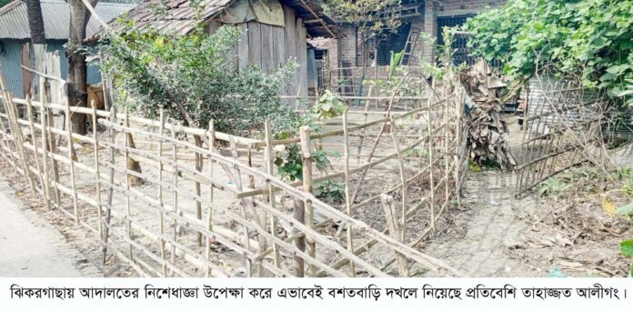 নিশেধাজ্ঞা (১৪৪ ধারা) ভঙ্গ করে জমি দখল, বাড়িঘর ভাংচুরসহ বাশের বেড়া