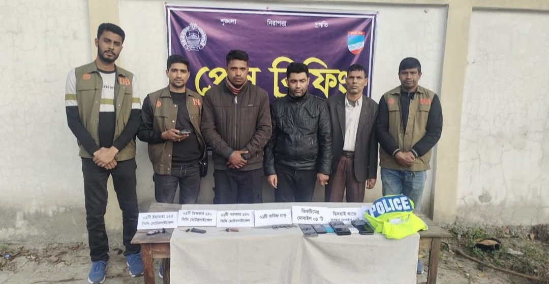 গত বুধবার রাতে তাদেরকে আলাদা আলাদা অভিযানে খুলনা যশোর থেকে আটক করা হয়। গত ডিসেম্বর ও চলতি জানুয়ারি মাসে যশোরের বাঘারপাড়া কয়েকটি স্থানে পুলিশ পরিচয় ও ডাকাতির ঘটনা ঘটে। যশোর ডিবি পুলিশ মনে করছে আটককৃতরা এসব অপরাধ সংঘটিত করেছে। আটককৃতরা হচ্ছে, যশোরের ঝিকরগাছা উপজেলার শিমুলিয়া গ্রামের হাসান হোসেন মোল্লার ছেলে বর্তমানে খুলনার সোনাডাঙ্গা ট্রাকস্ট্যান্ড এলাকার বাসিন্দা সাগর হোসেন রাজ, খুলনার দিঘলিয়া উপজেলার মাঝিগাতি গ্রামের মৃত মনোরঞ্জন বিশ্বাসের ছেলে বর্তমানে সোনাডাঙ্গার বাসিন্দা মিথুন বিশ্বাস ও বাগেরহাটের রামপাল উপজেলার শোগুনা গ্রামের বিমল কৃষ্ণ পালের ছেলে বর্তমানে খুলনার লবণচরার জিন্নাপাড়া বউবাজার এলাকার সুশীল কুমার পাল। পুলিশ বলছে তাদের অন্যতম সহযোগি মহুরি পরচয়দানকারী মাসুদ নামের এক যুবক পালিয়েছে।