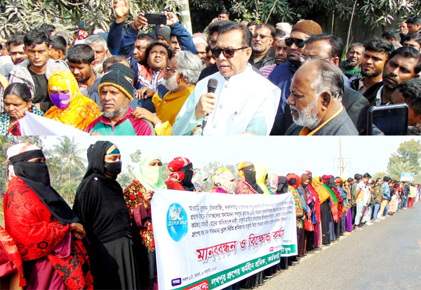 মানববন্ধন অনুষ্টানে বক্তৃতা করেন, নুর হাবিব, আলফাজ আল মেহেবুব, মুফতি আব্দুল হান্নান, লিপি রানী দে ও বিউটি ইনছান