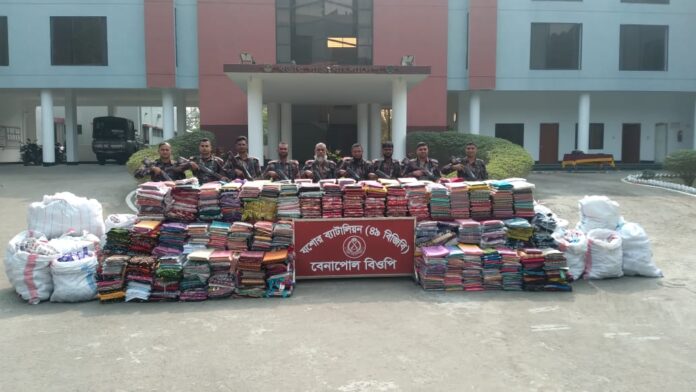 বিজিবির পক্ষ থেকে যশোর ব্যাটেলিয়ান ৪৯ বিজিবি অধিনায়ক অধিনায়ক সাইফুল্লাহ্ সিদ্দিকী,এসপিপি, পিএসসি জানান,বেশ কিছুদিন যাবত চোরাকারবারীরা সাধারণ পণ্যের অন্তরালে শুল্ক ফাঁকি দিয়ে আনানয়নকৃত ভারতীয় শাড়ী, তৈরী পোশাক, কম্বল এবং বিভিন্ন প্রকার কসমেটিক্স সামগ্রী বেনাপোল থেকে এসএ পরিবহনের মাধ্যমে দেশের বিভিন্ন জায়গায় পাচার করে আসছিল। ম্যাজিস্ট্রেট, বিজিবি এবং পুলিশ এর সমন্বয়ে একটি বিশেষ টাস্কফোর্স গঠন করে গত ২৩ জানুয়ারি রাত সাড়ে দশটার দিকে একটি তল্লাশি অভিযান পরিচালনা করা হয়। উক্ত টাস্কফোর্স অভিযানে নাভারন সার্কেলের সিনিয়র এএসপি নিশাত আল নাহিয়ান, শার্শা উপজেলার নির্বাহী অফিসার কাজী নাজিব হাসান শার্শা ও বেনাপোল থানার অফিসার ইনচার্জসহ আইনশৃঙ্খলা বাহিনীর অন্যান্য সদস্যসহ উপস্থিত ছিলেন। টাস্কফোর্সের মাধ্যমে যশোর জেলার শার্শার বিজিবি’র আমাড়াখালী চেকপোস্টের সামনে এসএ পরিবহনের একটি কার্গো ট্রাক (ঢাকা মেট্রো ড-১৪-০১৭০) তল্লাশি করে ভারতীয় ৮৮২টি শাড়ী, ৪৫৩টি থ্রীপিচ,২৪৯টি তৈরী পোশাক সামগ্রী, ৪টি কম্বল,১৮ প্যাকেট কিসমিস,১৪ প্যাকেট জিরা,২৩ জোড়া স্যান্ডেল, ৪৮টি রিয়েলমি হেডফোন,৩৭১৬০টি বিভিন্ন প্রকার চকলেট এবং ৬৪৬টি বিভিন্ন প্রকার কসমেটিক্স সামগ্রী এর বৈধ কাগজপত্র না থাকায় উদ্ধার করা হয়। যার আনুমানিক মূল্য ৮৬ লাখ ৬ হাজার ৪ শত ৭৫ টাকা।